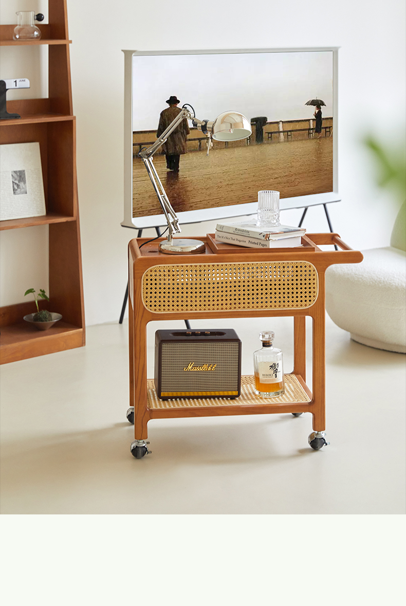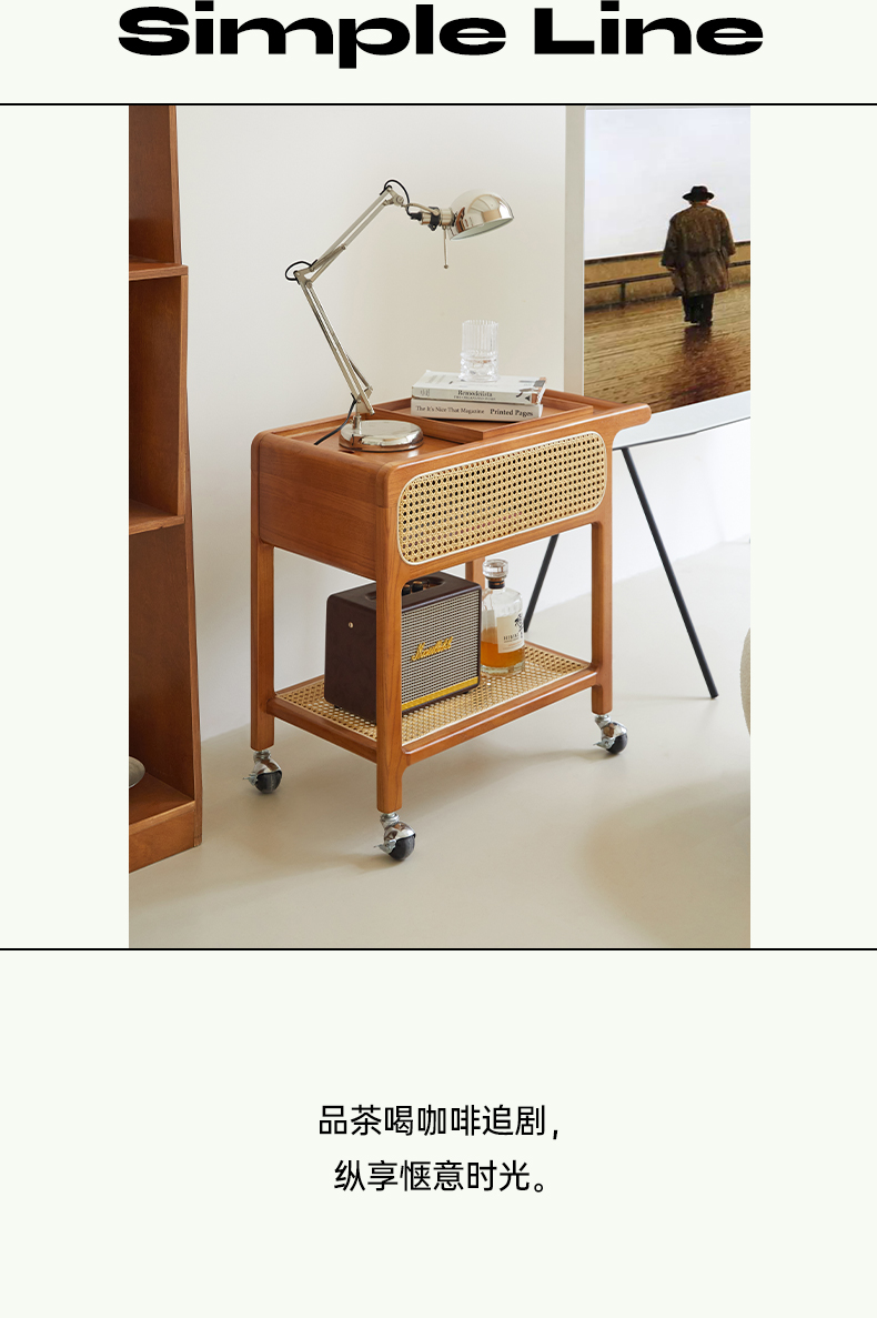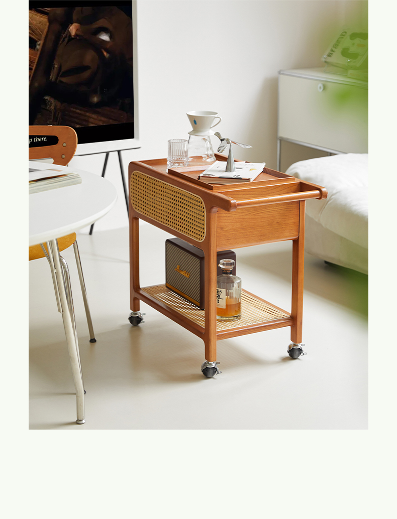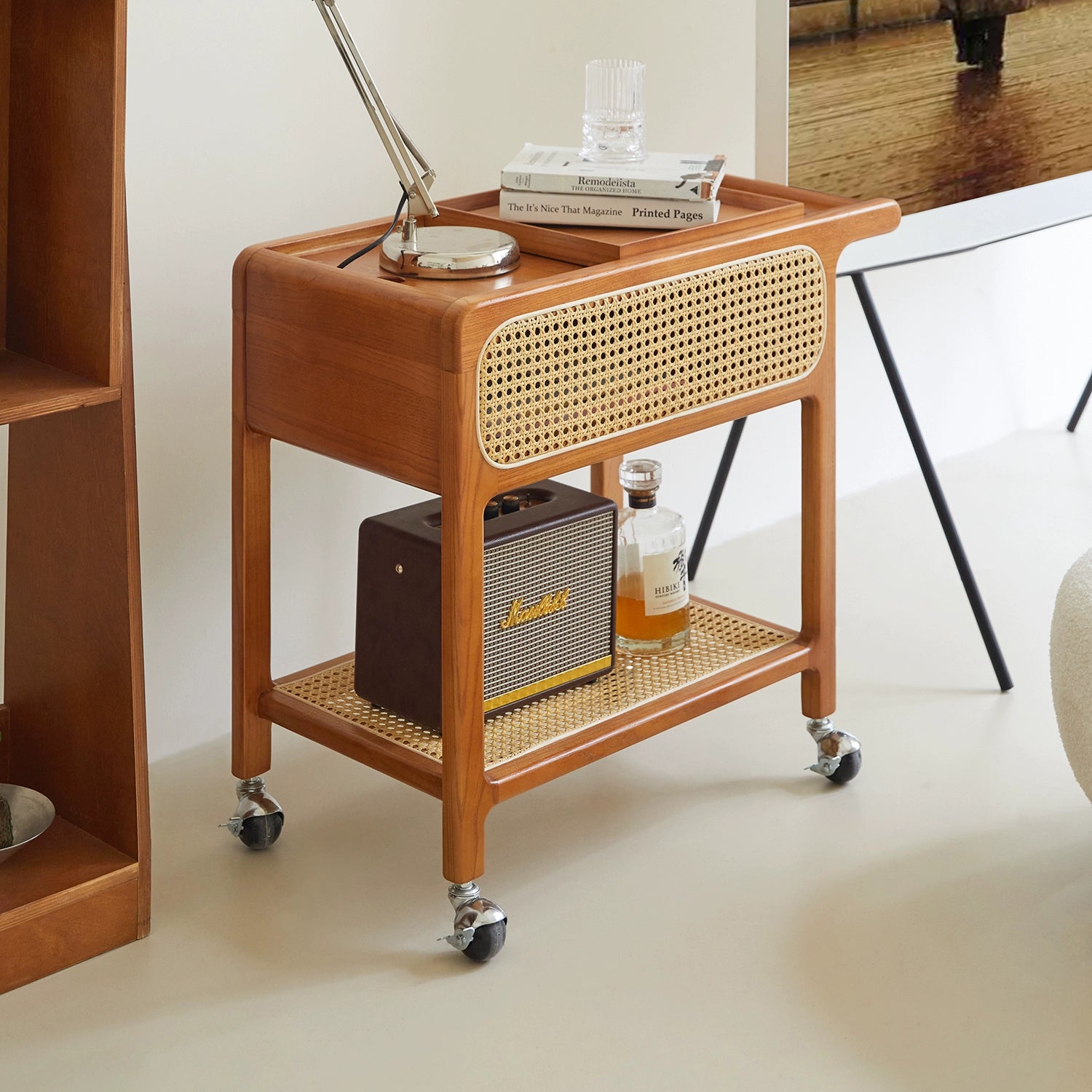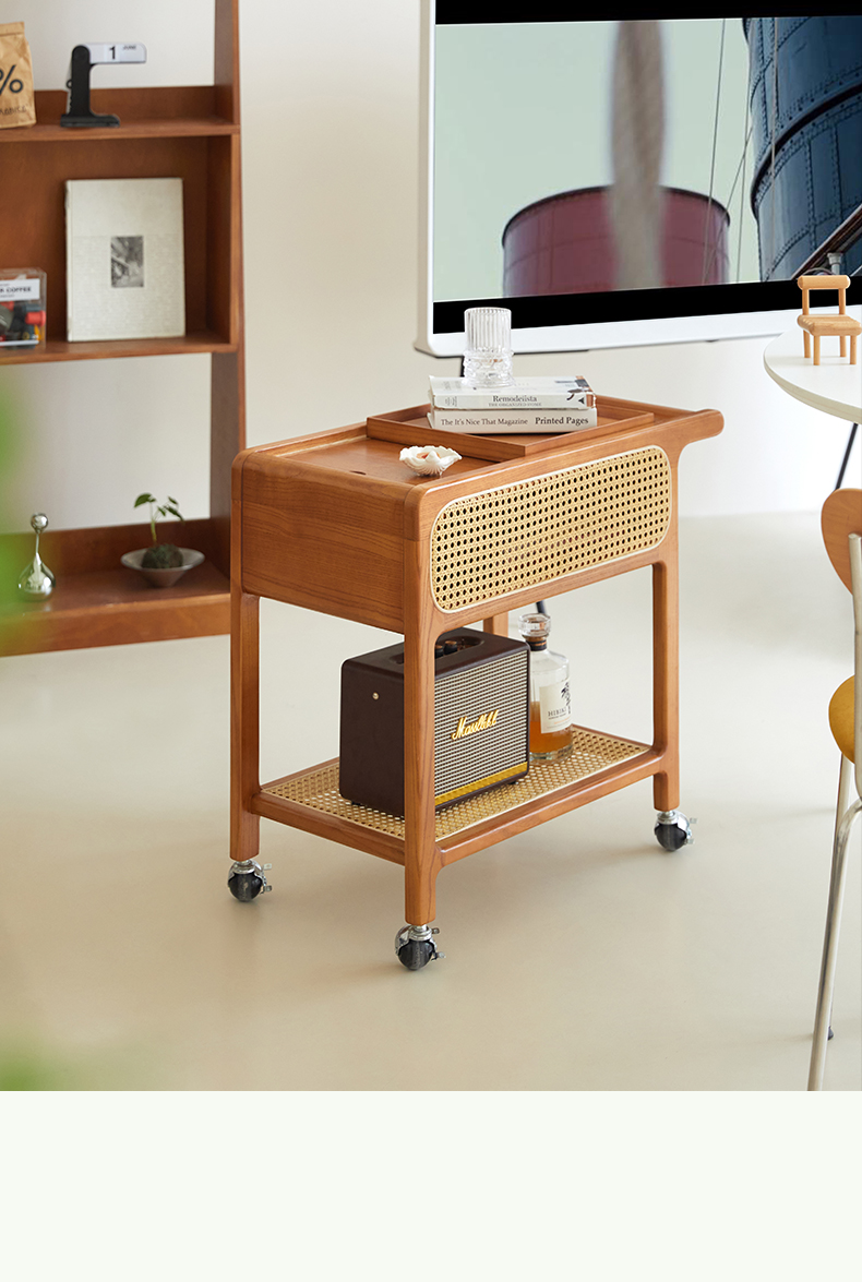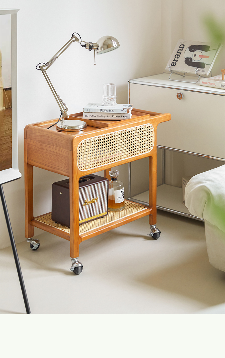Massivholz Rattan Trolley Seite Paar Mittelalterlichen Sofa Beweglichen Rack Wabi Sabi Nachttisch Kleinen Tisch