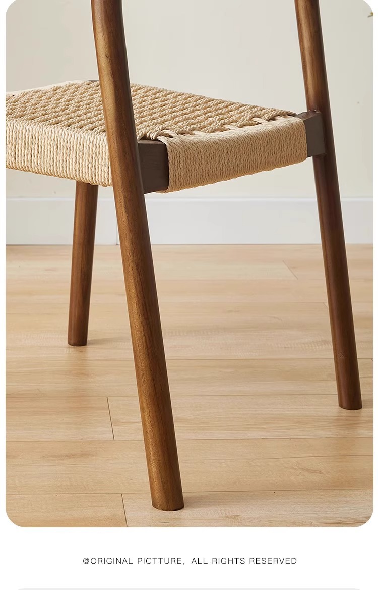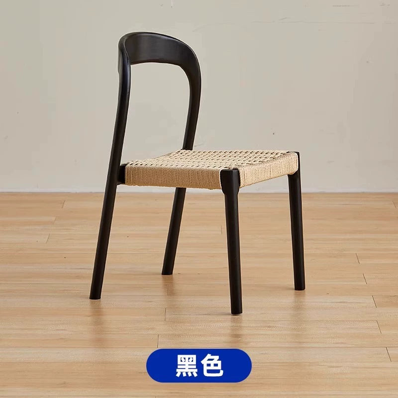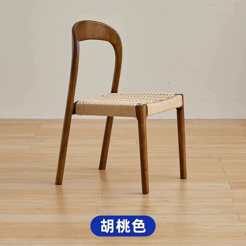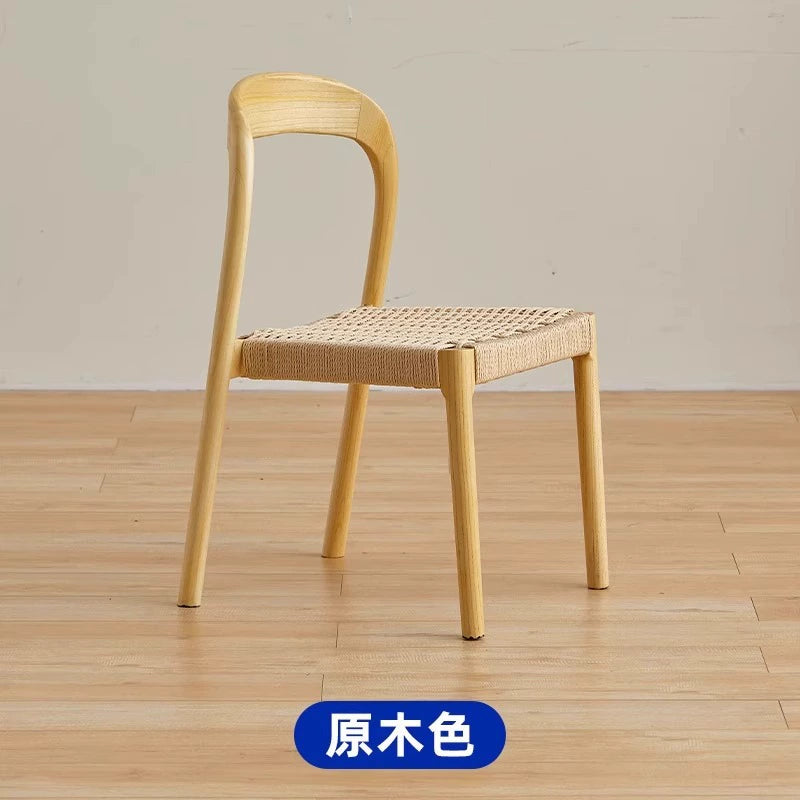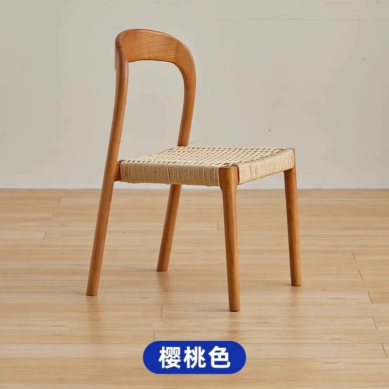 Esszimmerstuhl aus massivem Holzseil, Retro, nordischer Wabi-Wind-Stuhl, Rückenlehnenstuhl, für den Haushalt, kleine Wohnung, Schreibtischstuhl