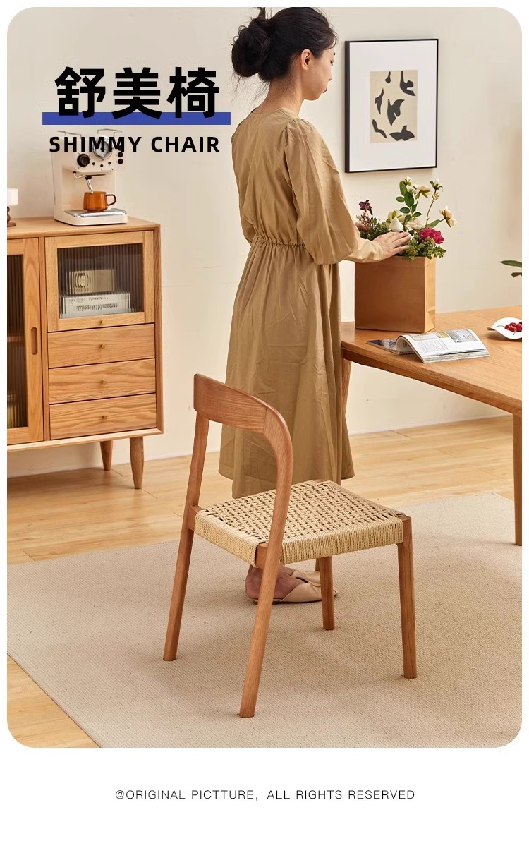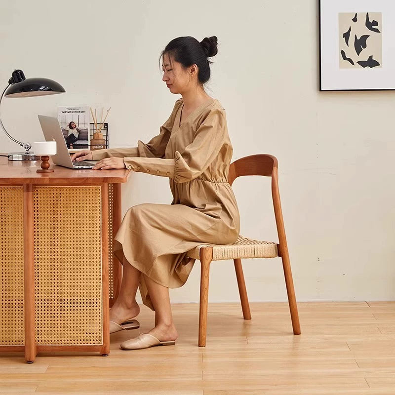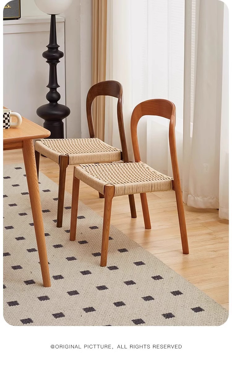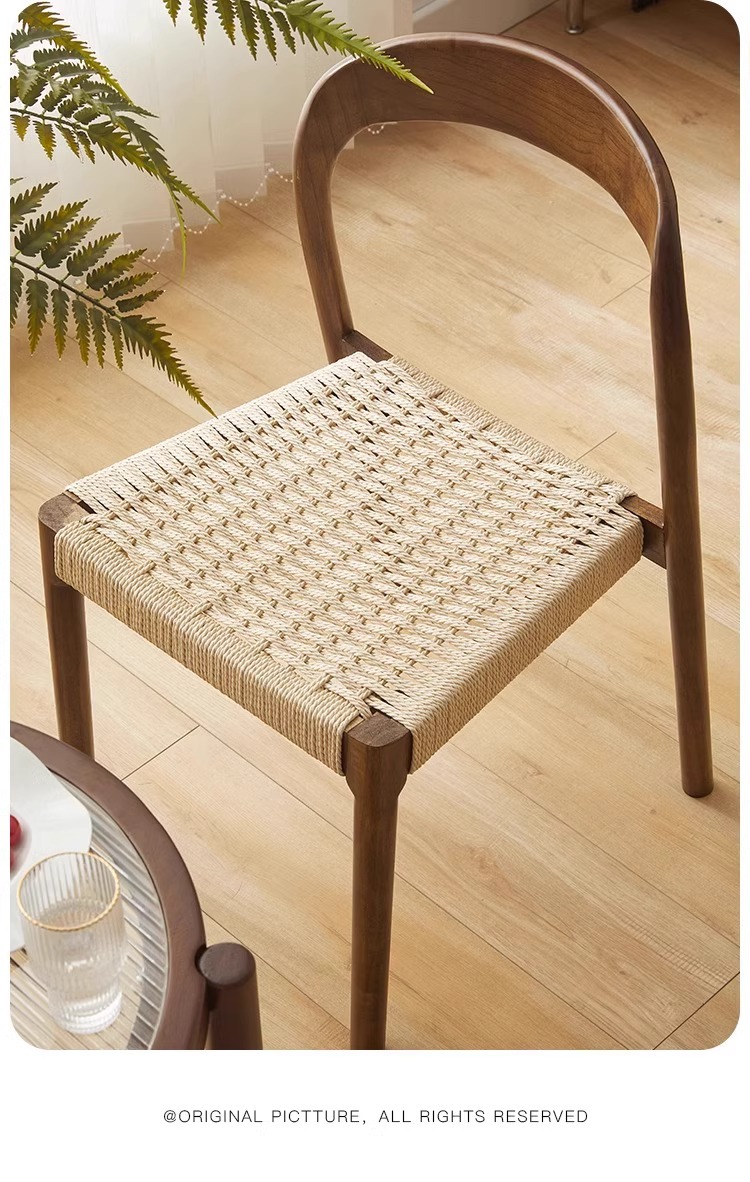 Esszimmerstuhl aus massivem Holzseil, Retro, nordischer Wabi-Wind-Stuhl, Rückenlehnenstuhl, für den Haushalt, kleine Wohnung, Schreibtischstuhl