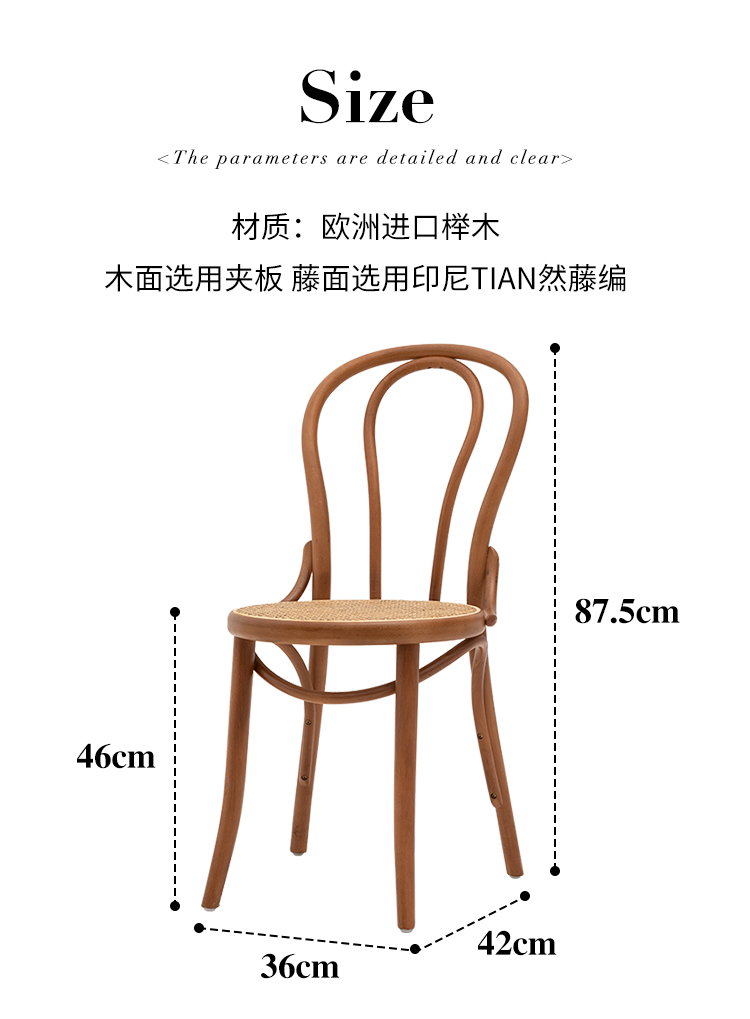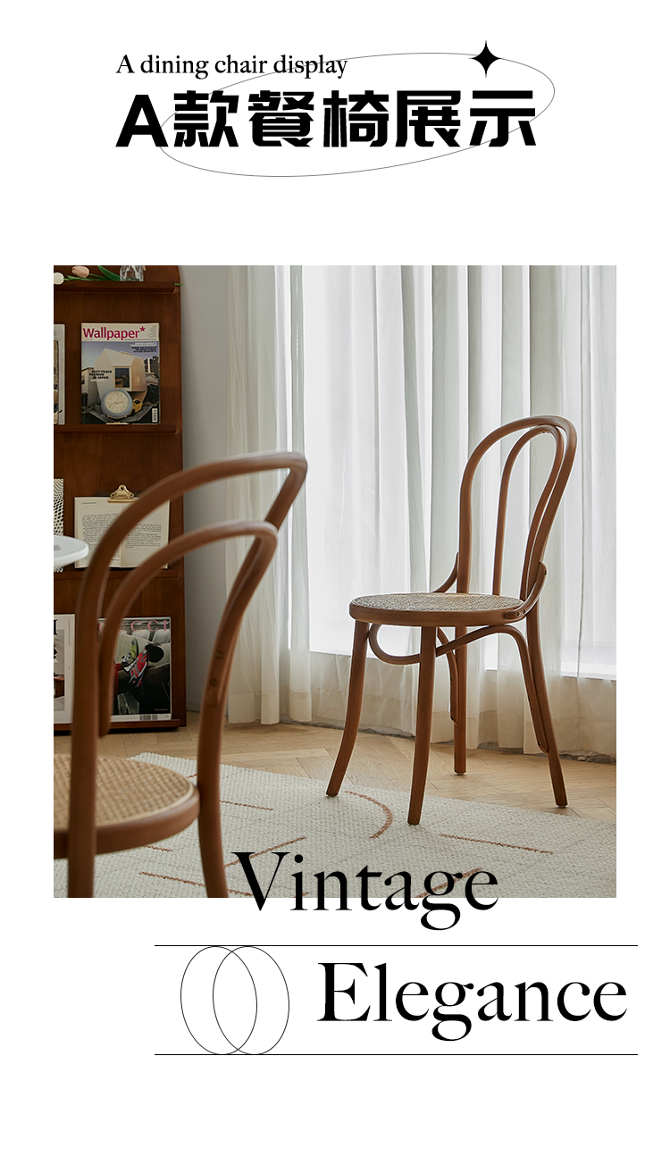 Sonnet Stuhl Nr. 18 Nordic Massivholz Rattan Esszimmerstuhl Home Retro Homestay Cafe Rückenlehne Stuhl