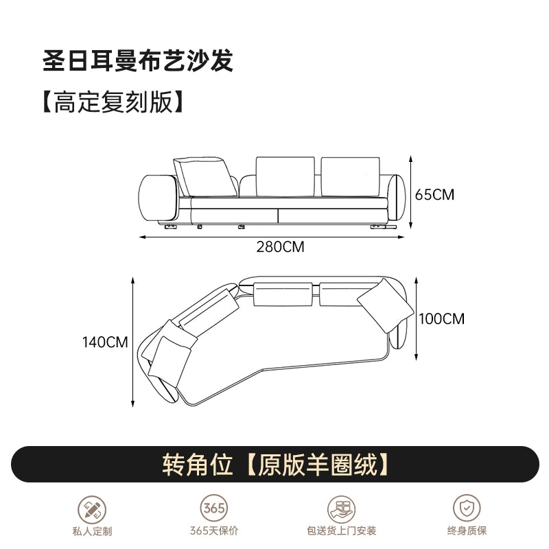 Italian Light Luxury Saint-Germain Fabric Sofa Modern Simple Designer Living Room Curved Corner Combination Sofa