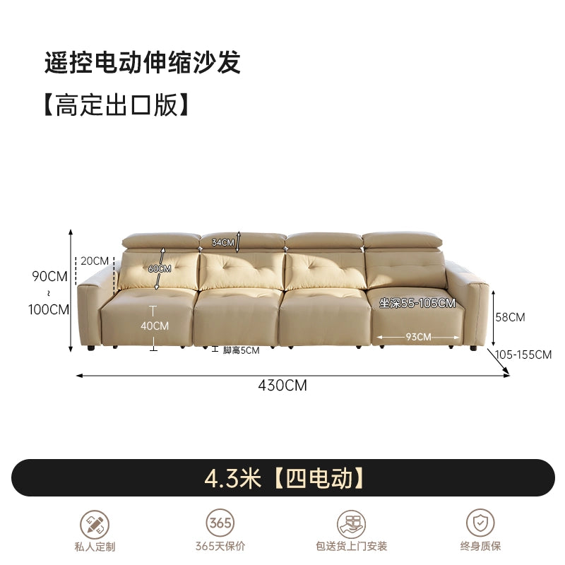 Italian Minimalist Electric Sofa Small Apartment Living Room Adjustable Function Sofa Bed High-end Zero Wall Straight Sofa