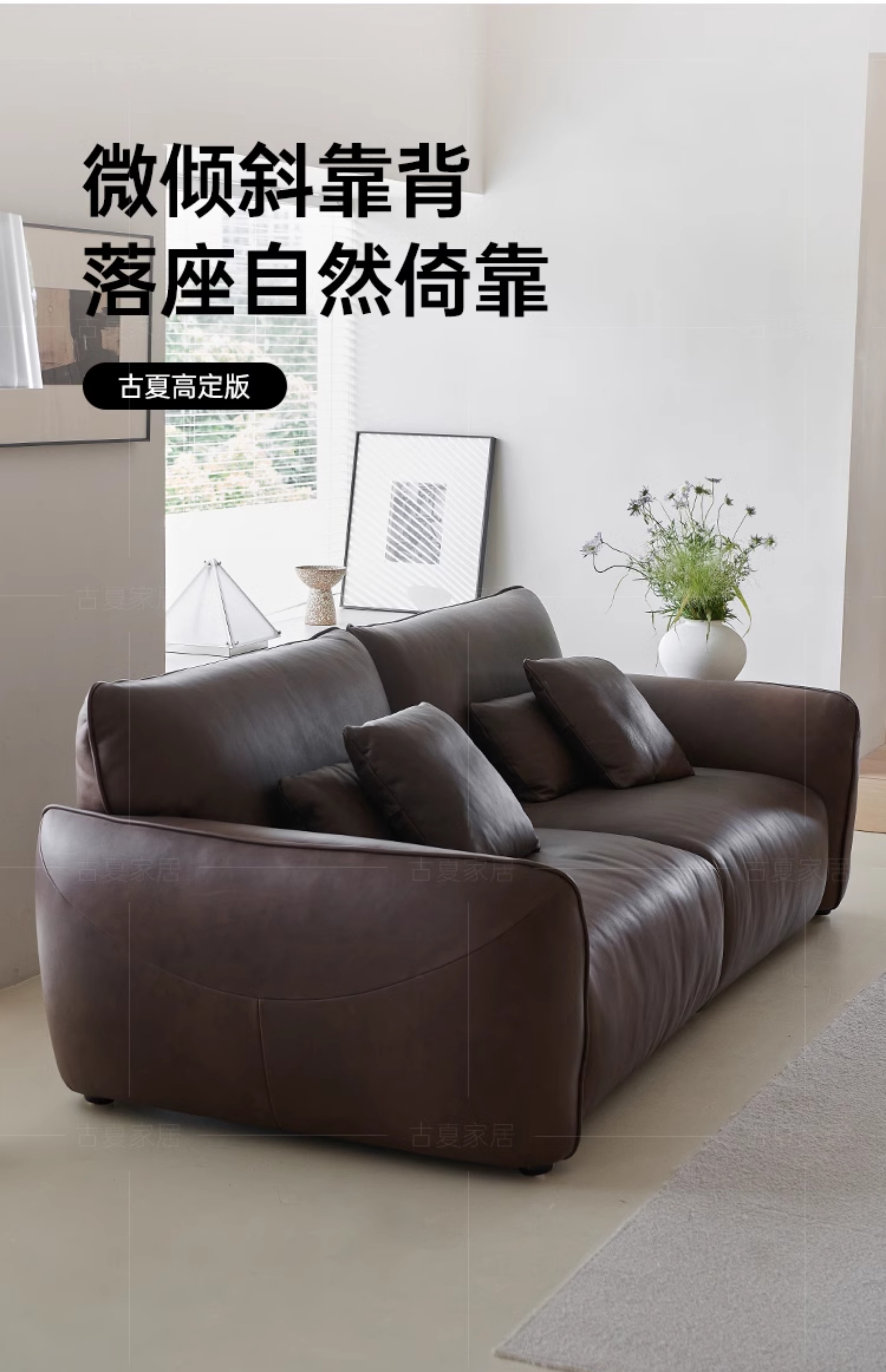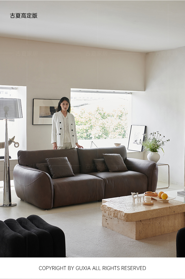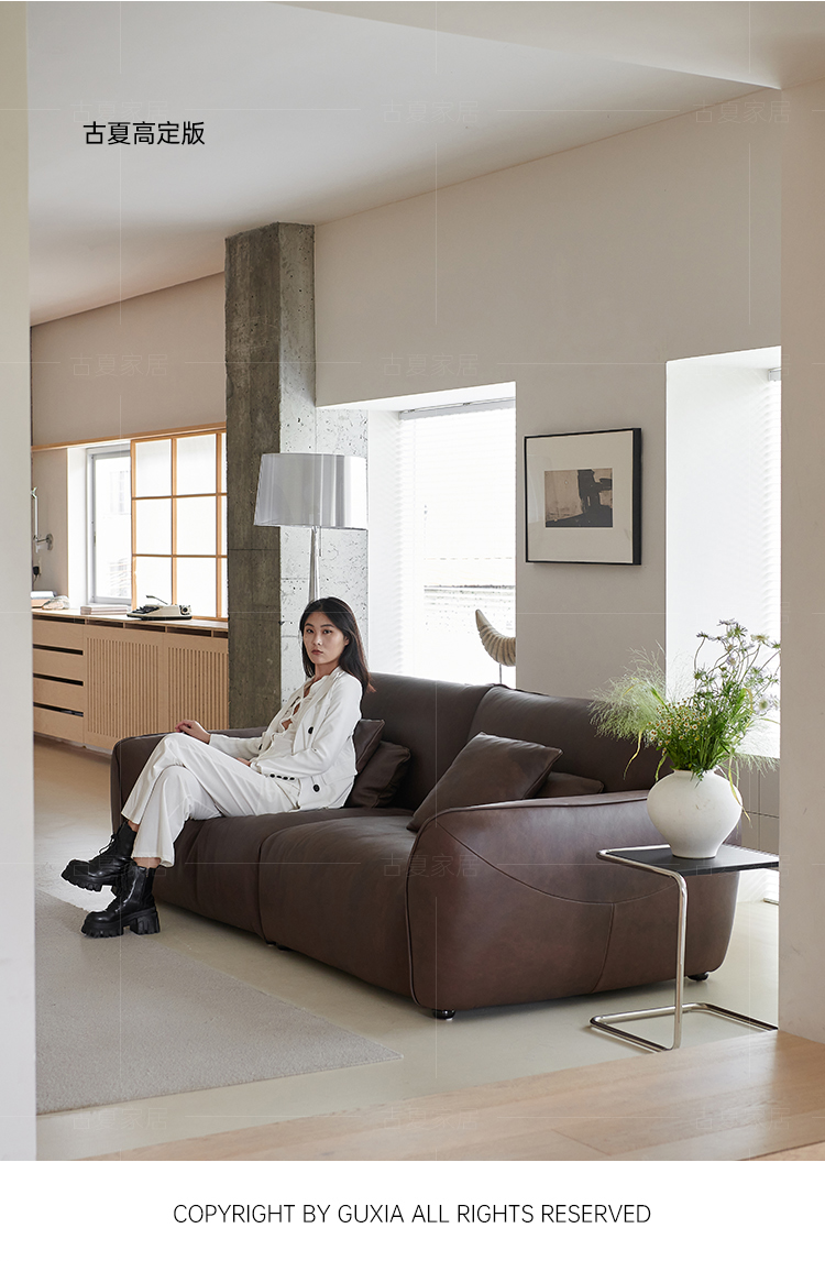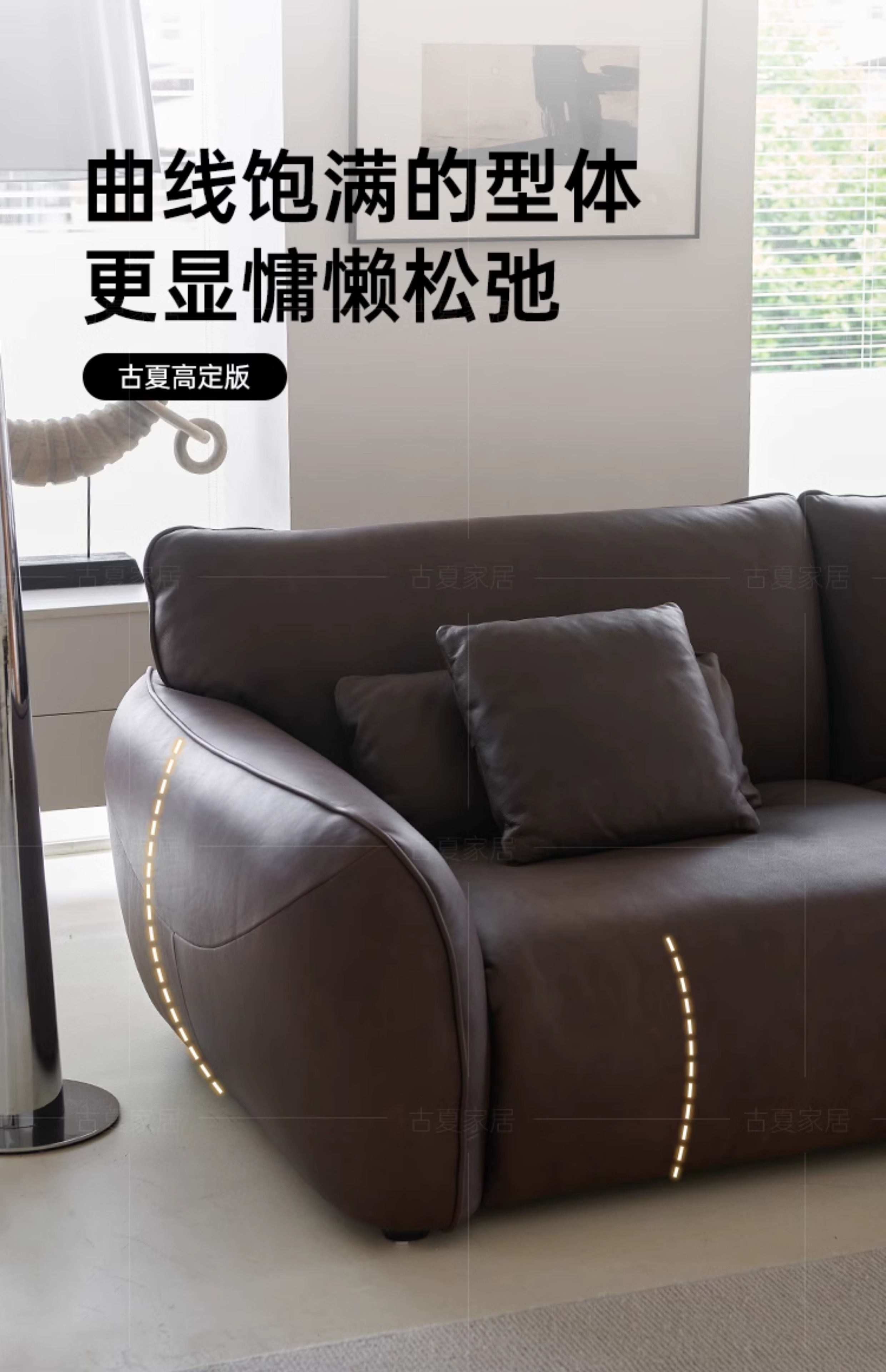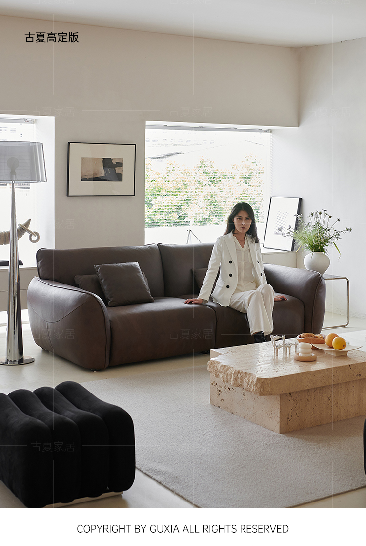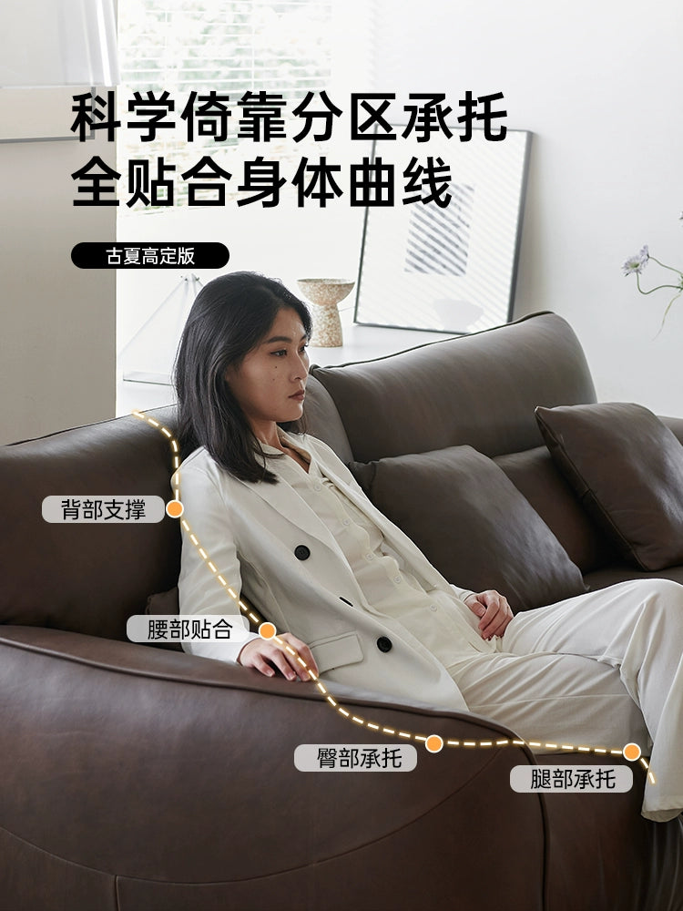 Italian Minimalist First-layer Cowhide Designer Large Flat-floor Villa Living Room High-end Straight Row Medieval Big Fat Sofa