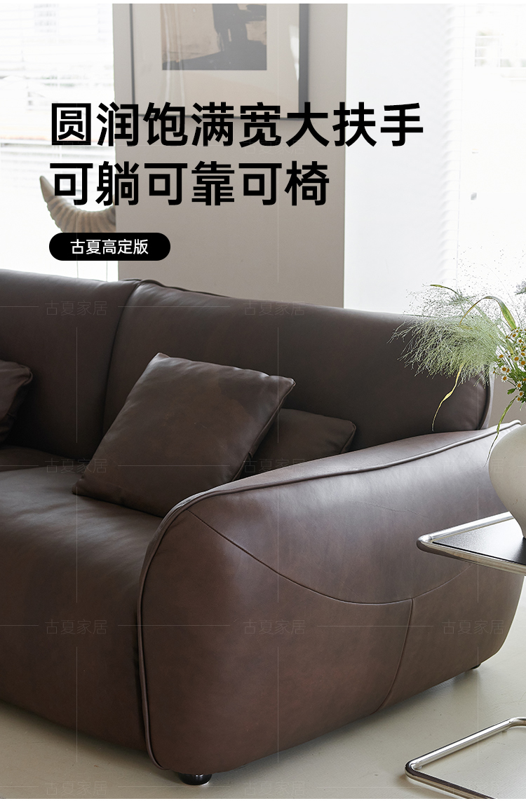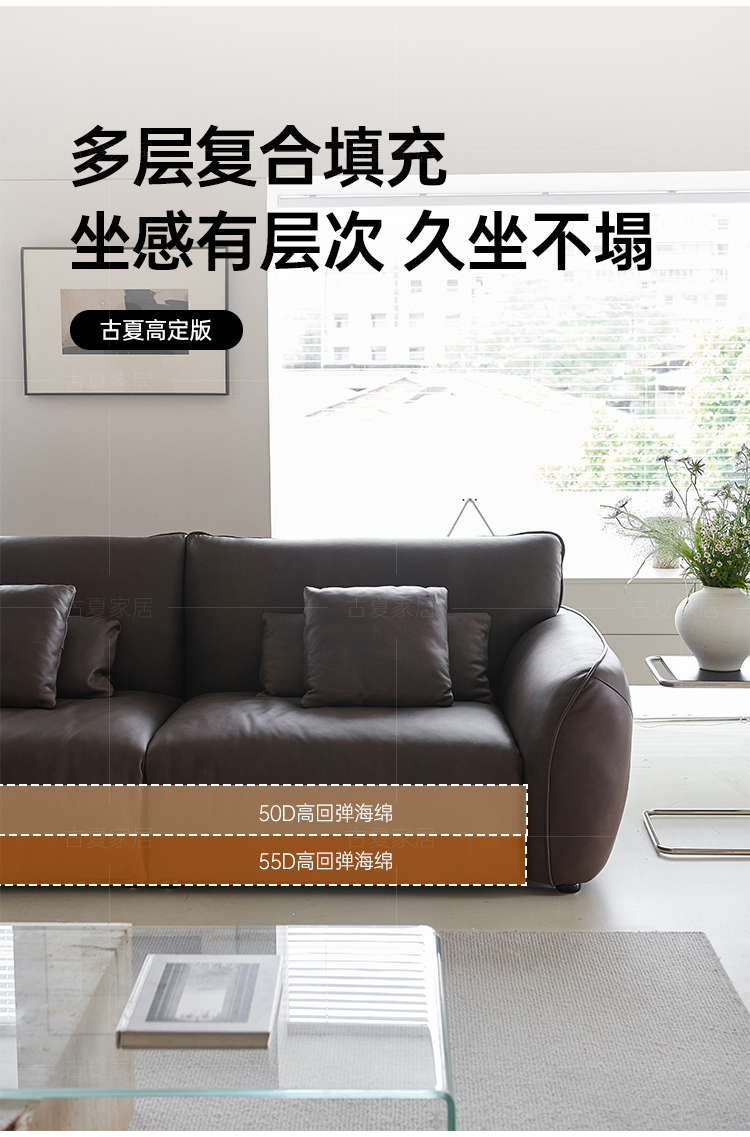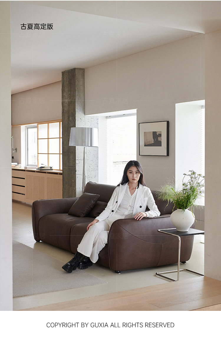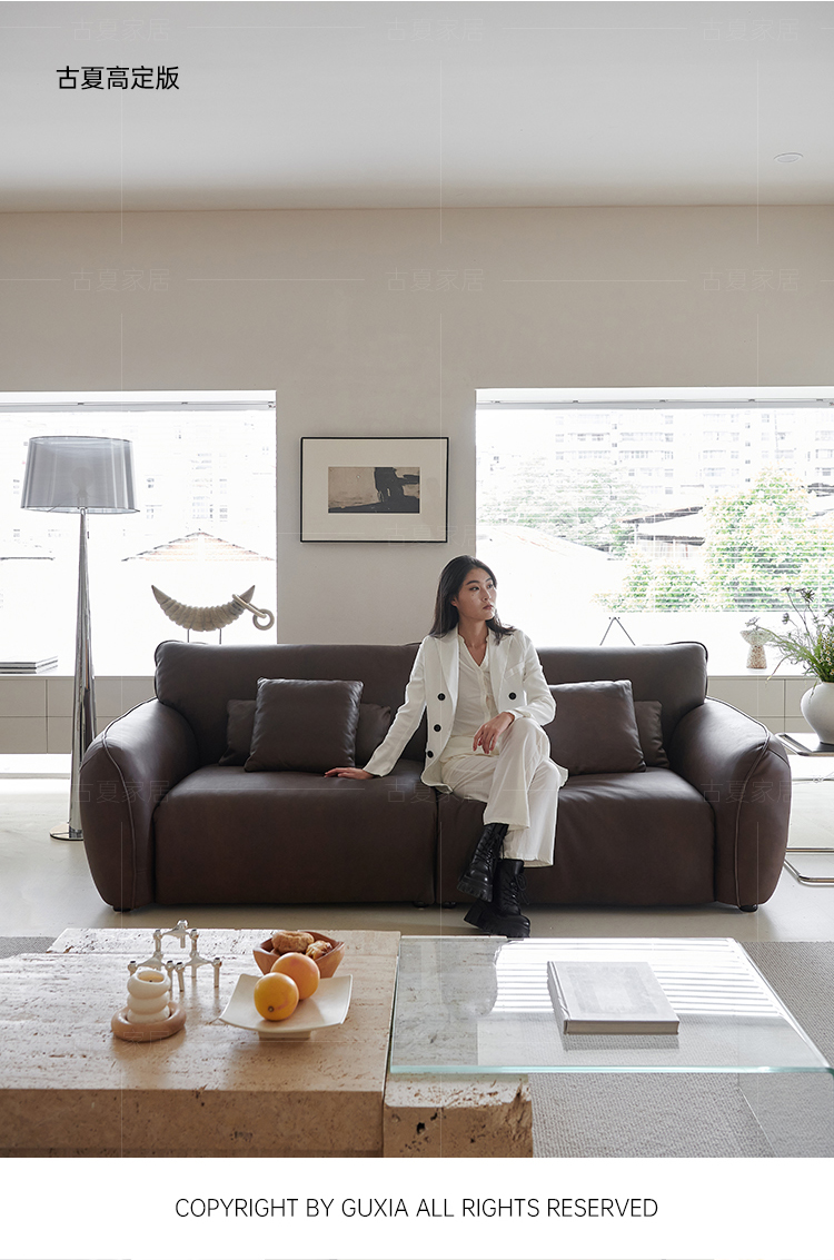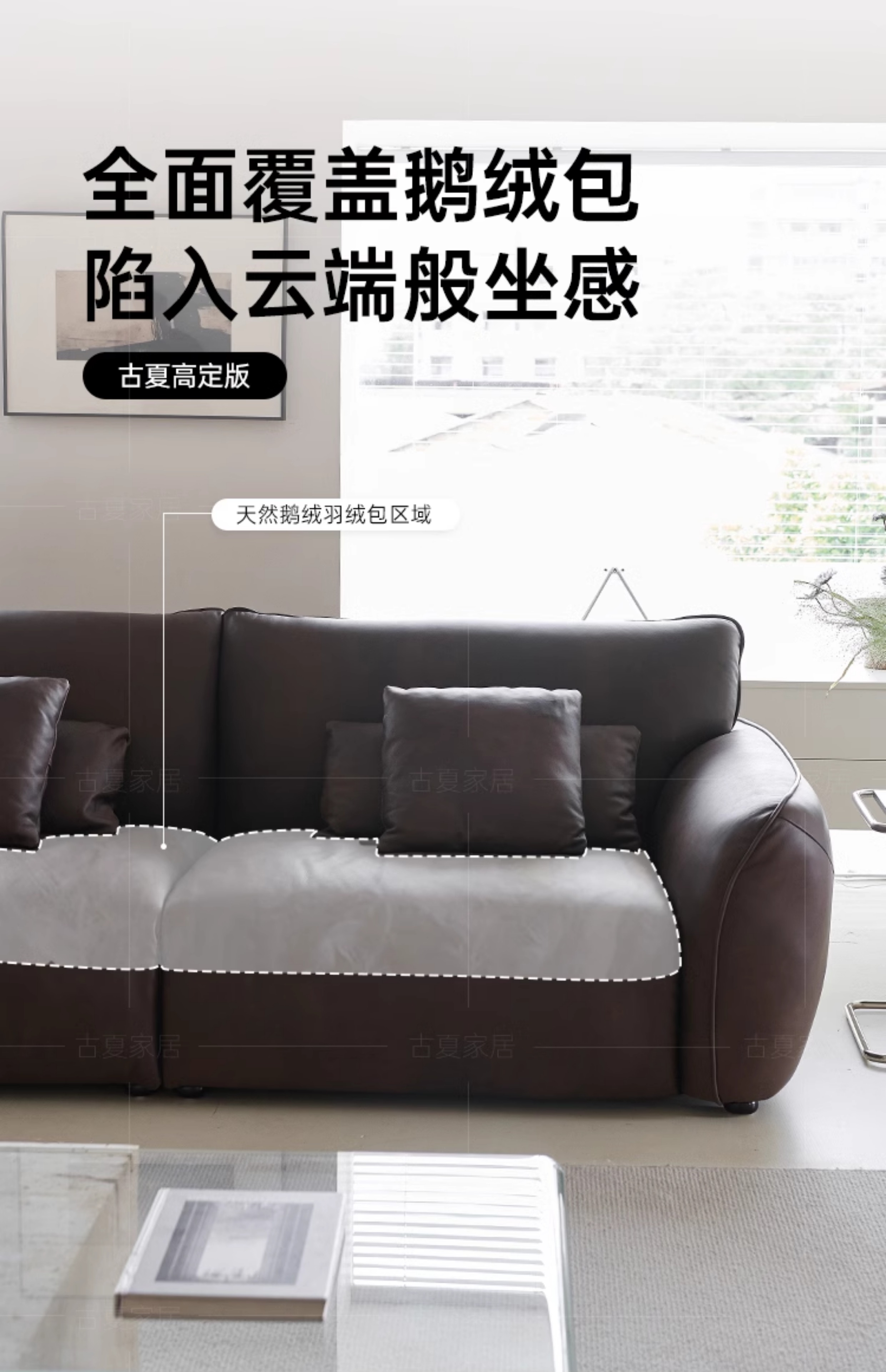 Italian Minimalist First-layer Cowhide Designer Large Flat-floor Villa Living Room High-end Straight Row Medieval Big Fat Sofa