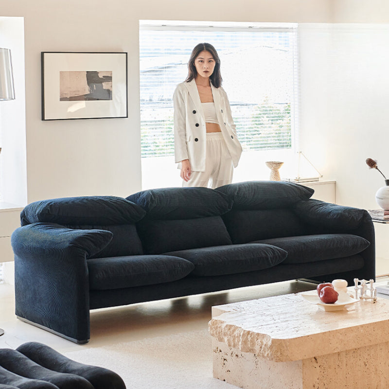 Italian Minimalist Maralunga Sofa Living Room Straight Row Three High Backrest Folding Ear Fabric Sofa