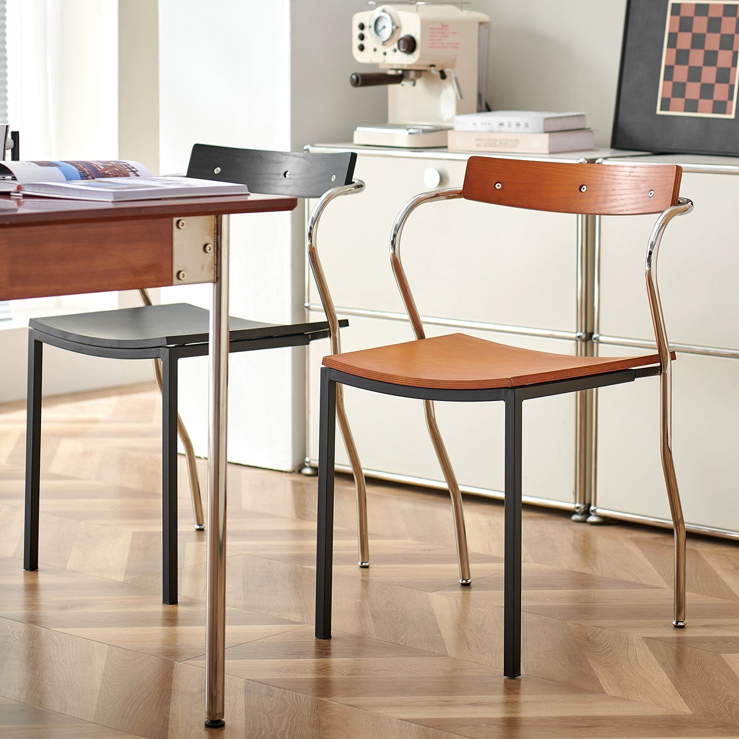 Leichter Luxus-Esszimmerstuhl der Spitzenklasse, Designerstuhl aus mittelalterlichem Kunstholz, Schmiedeeisen, Café-Freizeitstuhl