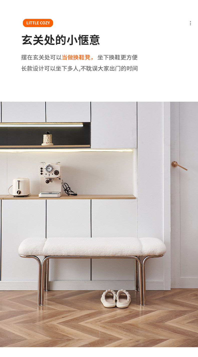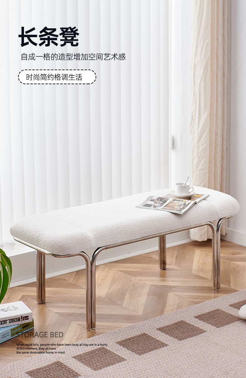 Leichter Luxus-Schuhwechselhocker, weiche Tasche, cremefarbener Wind, langer Hocker, nordischer Bauhaus-Minimalist, Ins-Betthocker