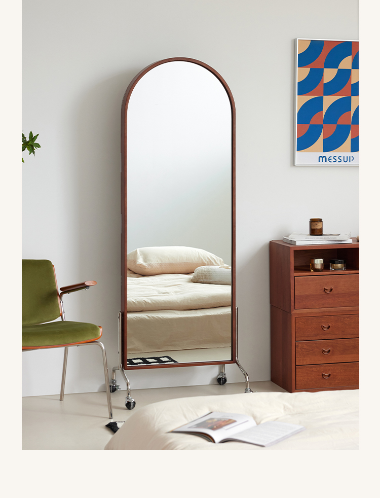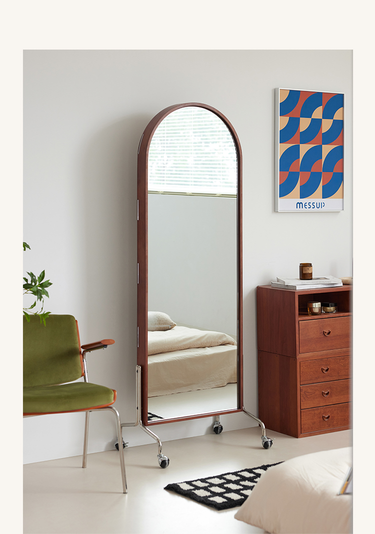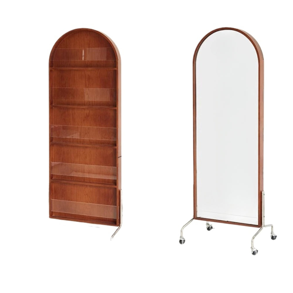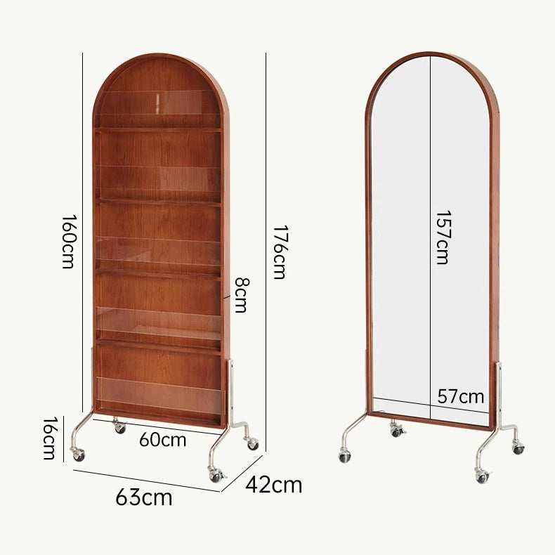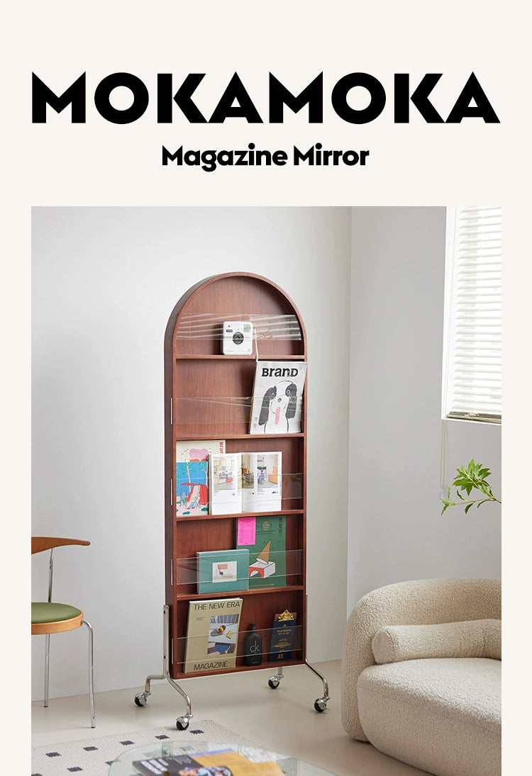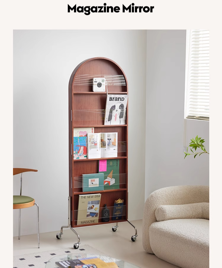 Zeitschriftenständer Multifunktionaler Ganzkörperspiegel Retro-Zeitungsständer aus Massivholz vom Boden bis zur Decke Beweglicher Ganzkörperspiegel
