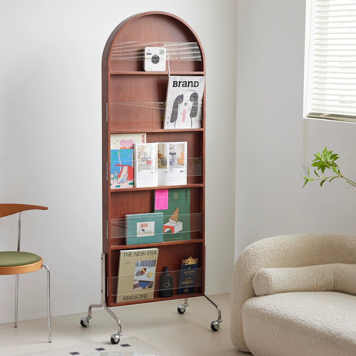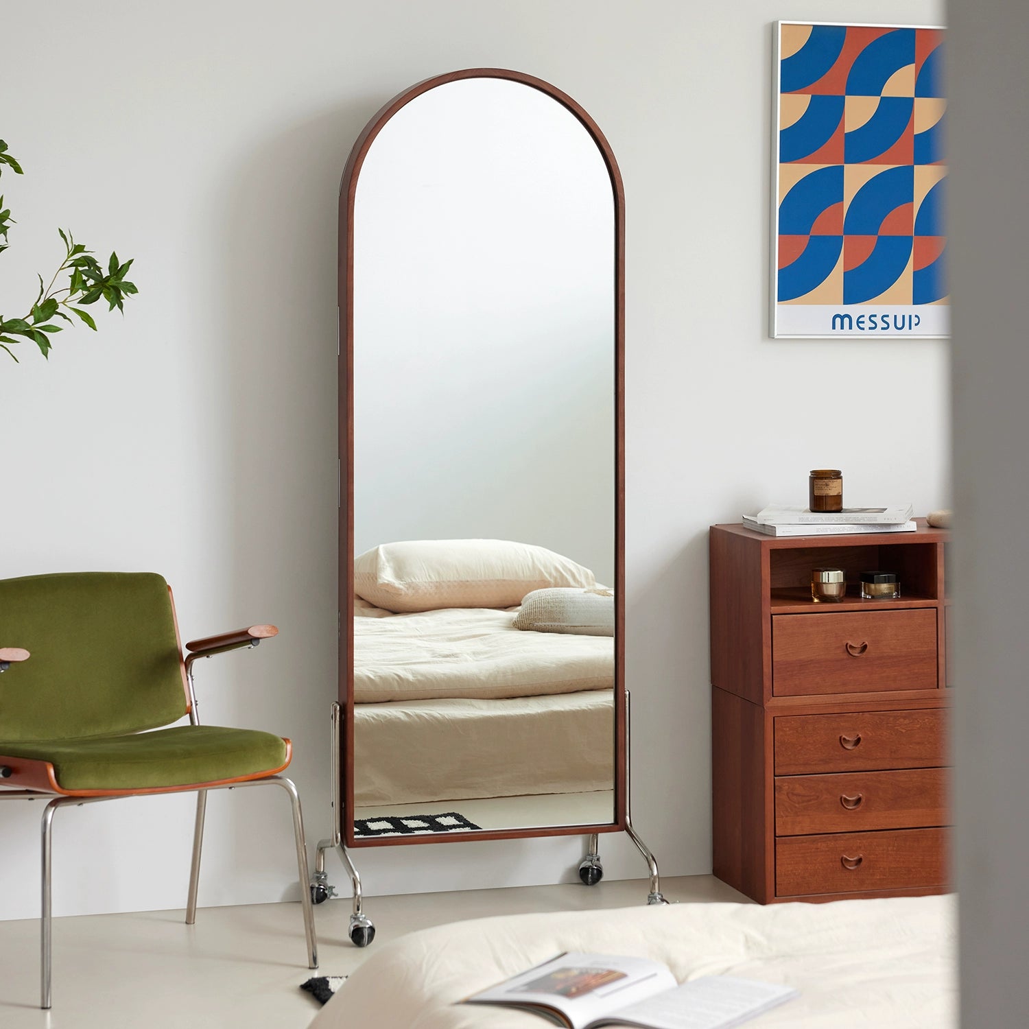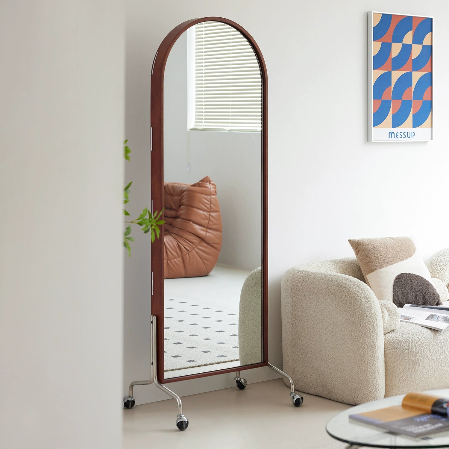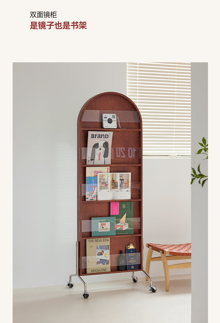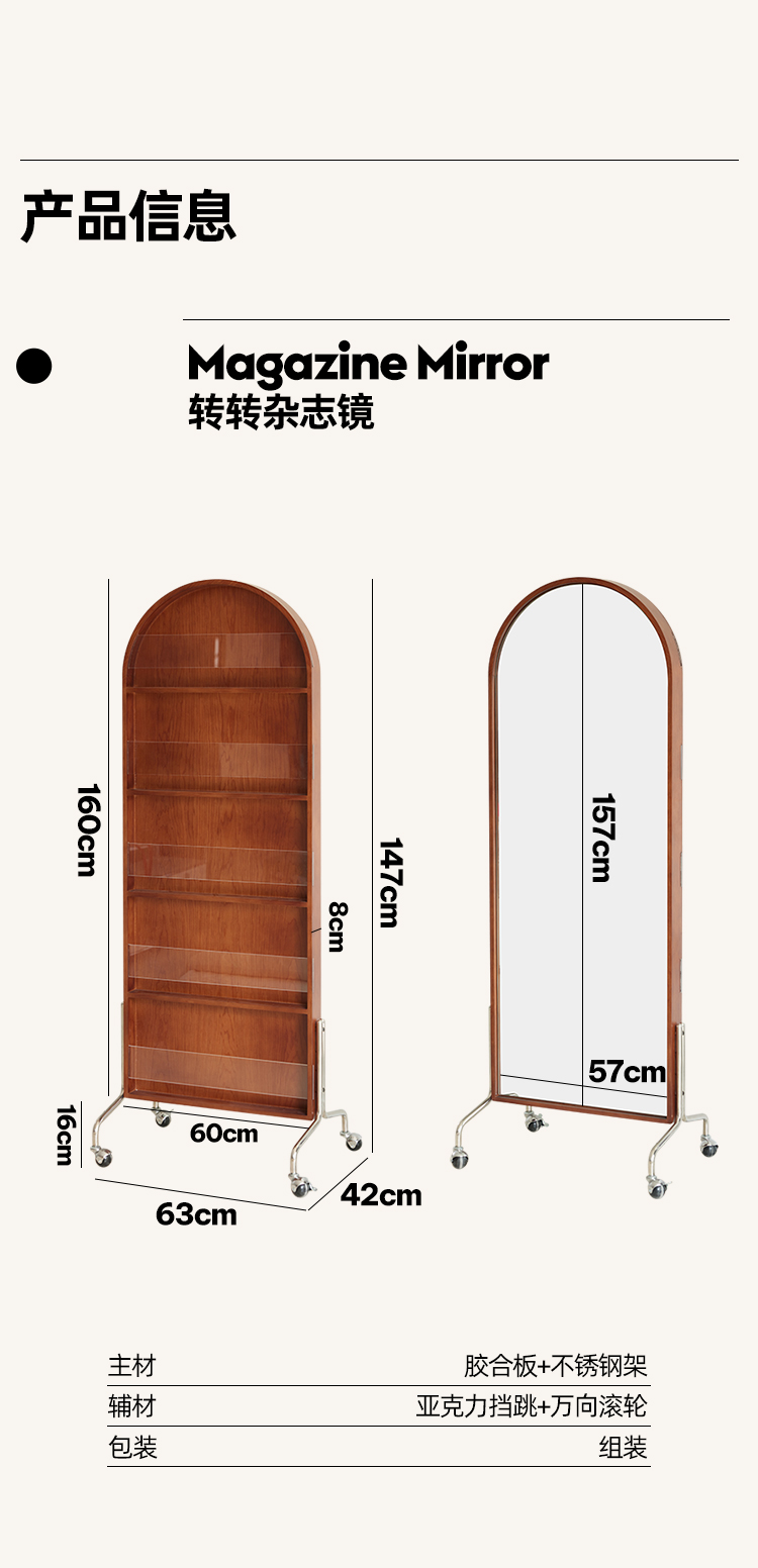 Zeitschriftenständer Multifunktionaler Ganzkörperspiegel Retro-Zeitungsständer aus Massivholz vom Boden bis zur Decke Beweglicher Ganzkörperspiegel
