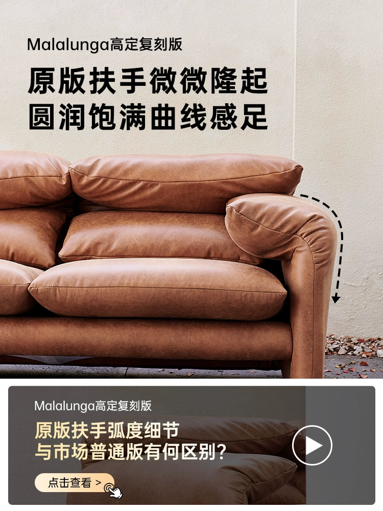 Maralunga Mallalunga Medieval Adjustable High Backrest Modern Minimalist Straight Row Three-person Leather Sofa