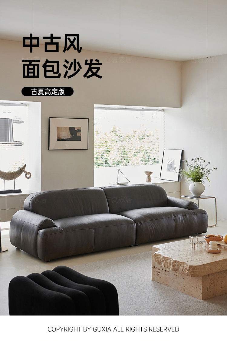Medieval Bread Sofa Retro Oil Wax Leather Old Living Room Small Apartment Designer Straight Row Lazy Three-person Sofa