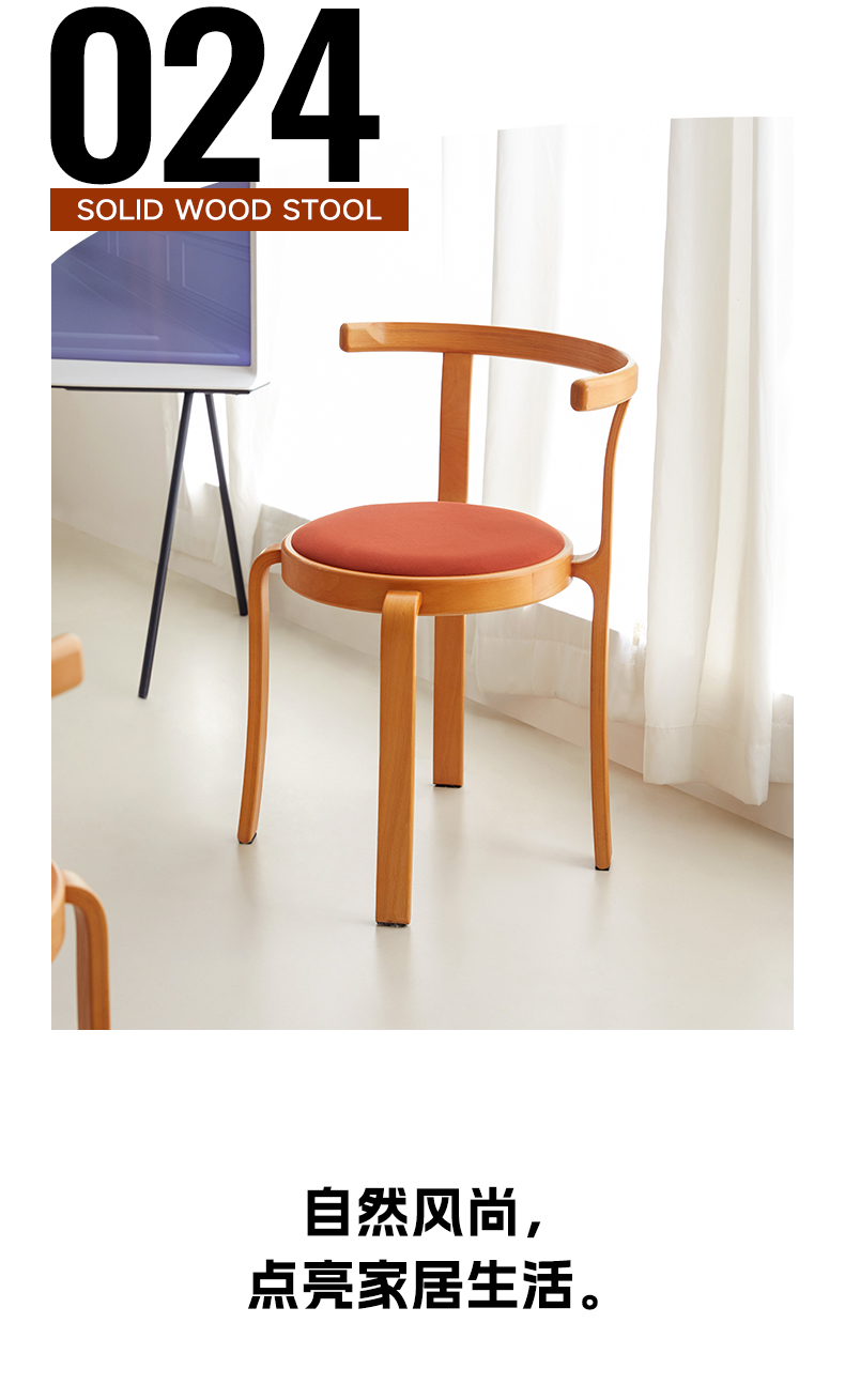 Mittelalterlicher Designer-Esszimmerstuhl aus Massivholz, stapelbarer Esszimmerstuhl für den Haushalt, kleine Wohnung, Rückenlehne, Esstisch und Stuhl