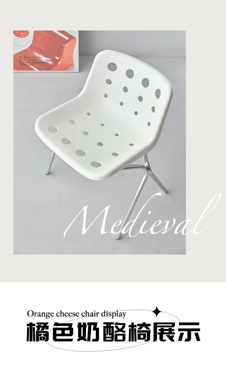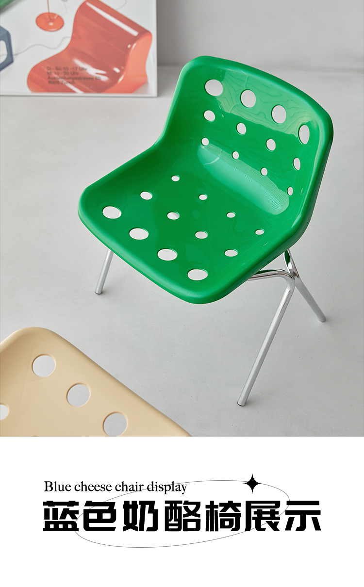 Mittelalterlicher Esszimmerstuhl mit Loch, Käsestuhl, koreanischer Ins-Caféstuhl, Haushaltshocker mit Kunststoffrückenlehne