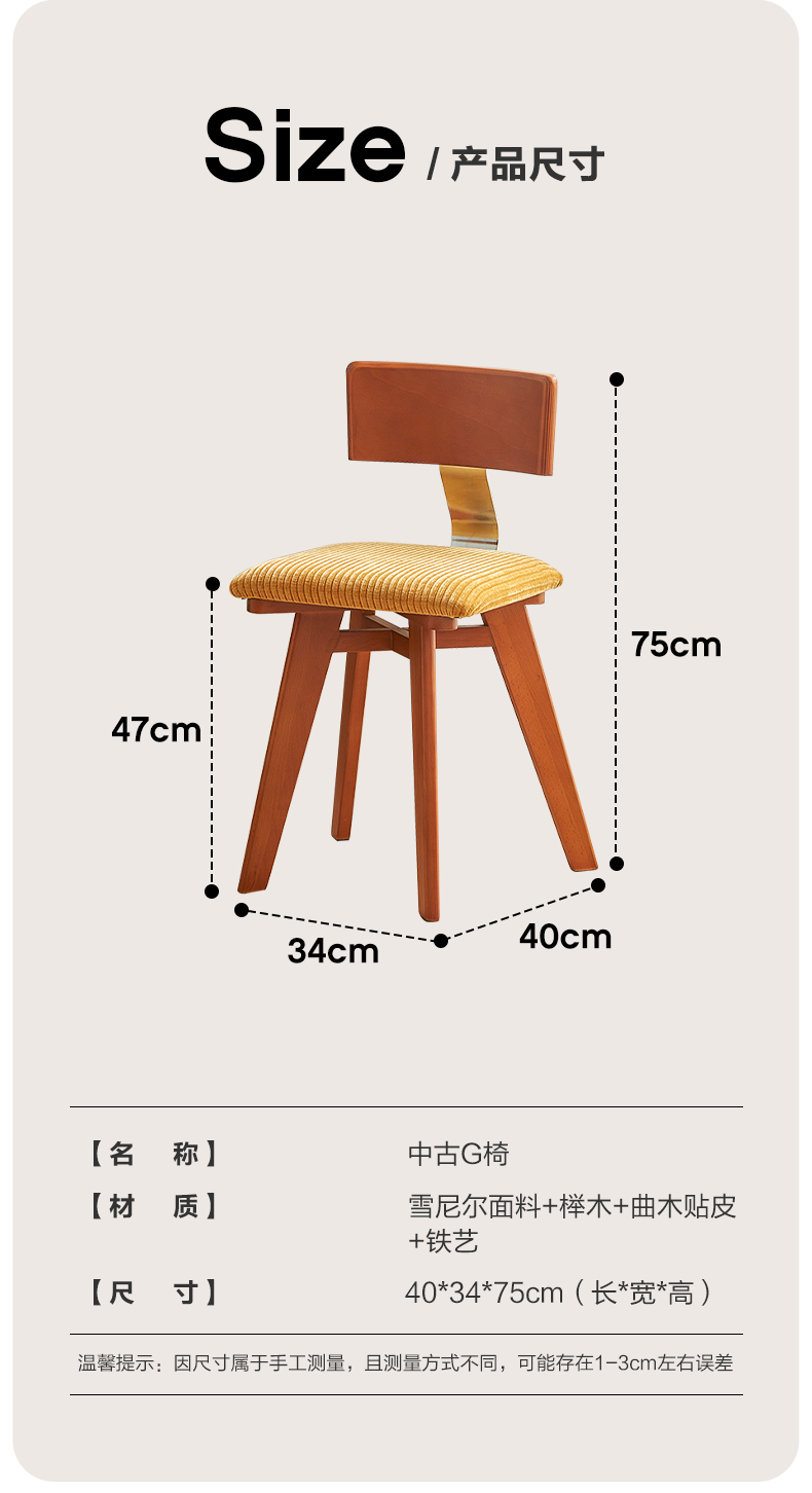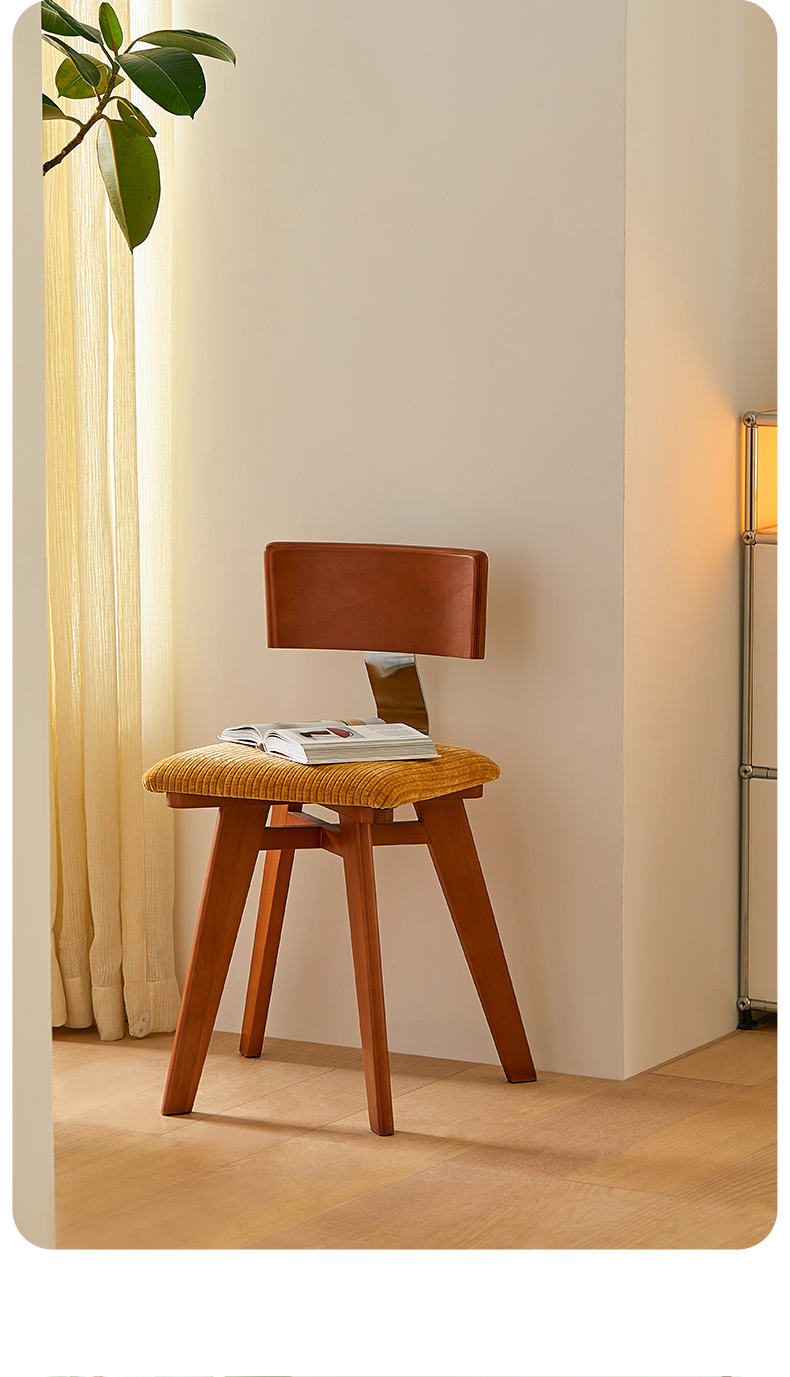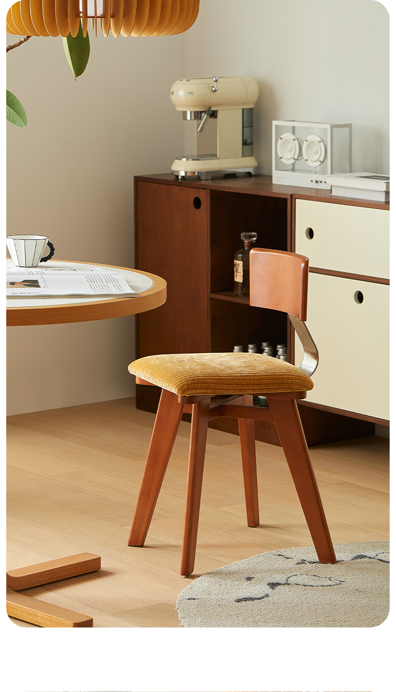 Mittelalterlicher Esszimmerstuhl Nordischer Stuhl mit Rückenlehne aus Massivholz Wabi-Sabi Designer Premium Französischer Freizeitstuhl