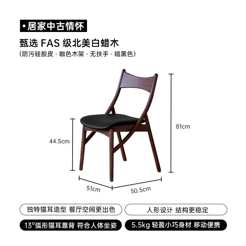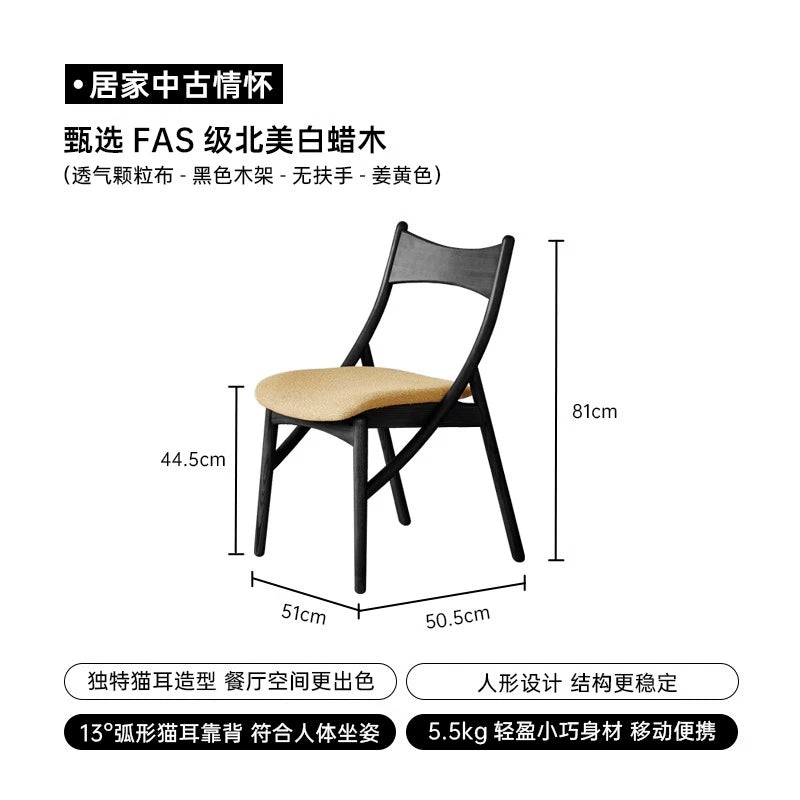 Mittelalterlicher Esszimmerstuhl aus Massivholz, Heimlehnenstuhl, Designer, weiche Tasche, Teetrinkstuhl, Meisterstuhl, Licht, Luxus, fortgeschritten