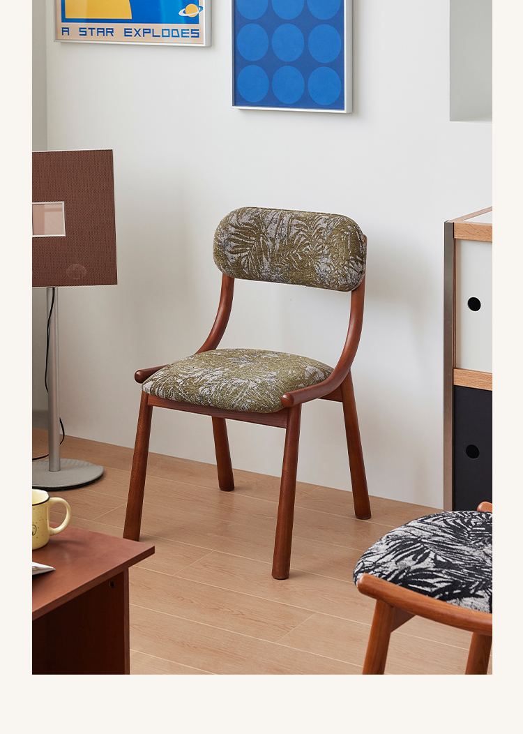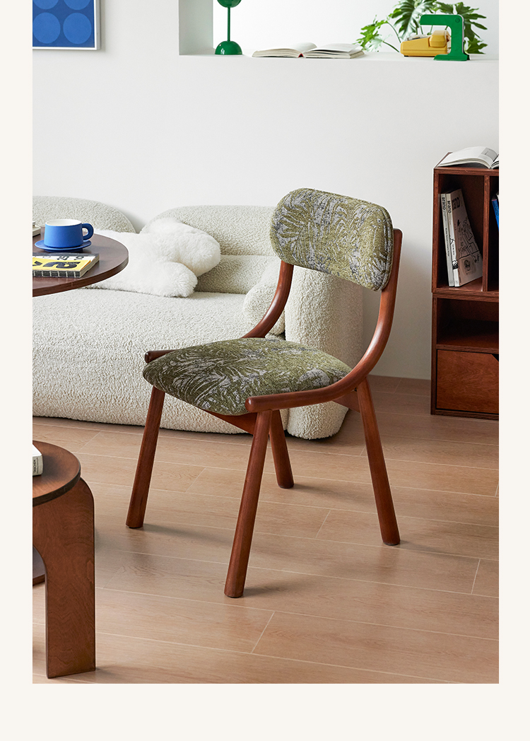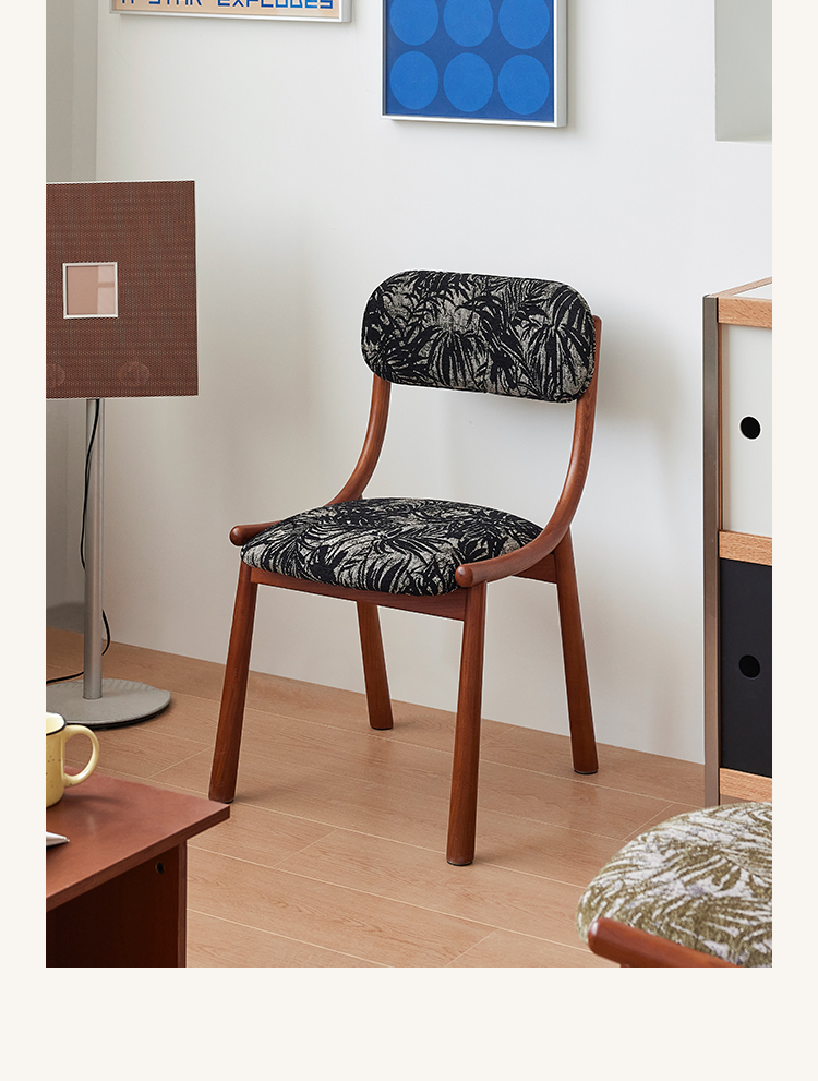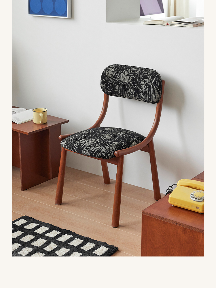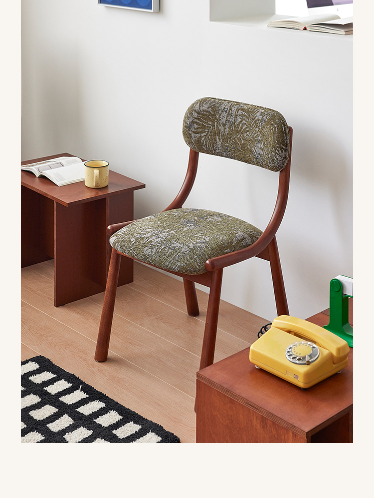Mittelalterlicher französischer Esszimmerstuhl, einfacher nordischer Stuhl aus Massivholz mit weicher Tasche, Freizeitstuhl im Ins-Stil