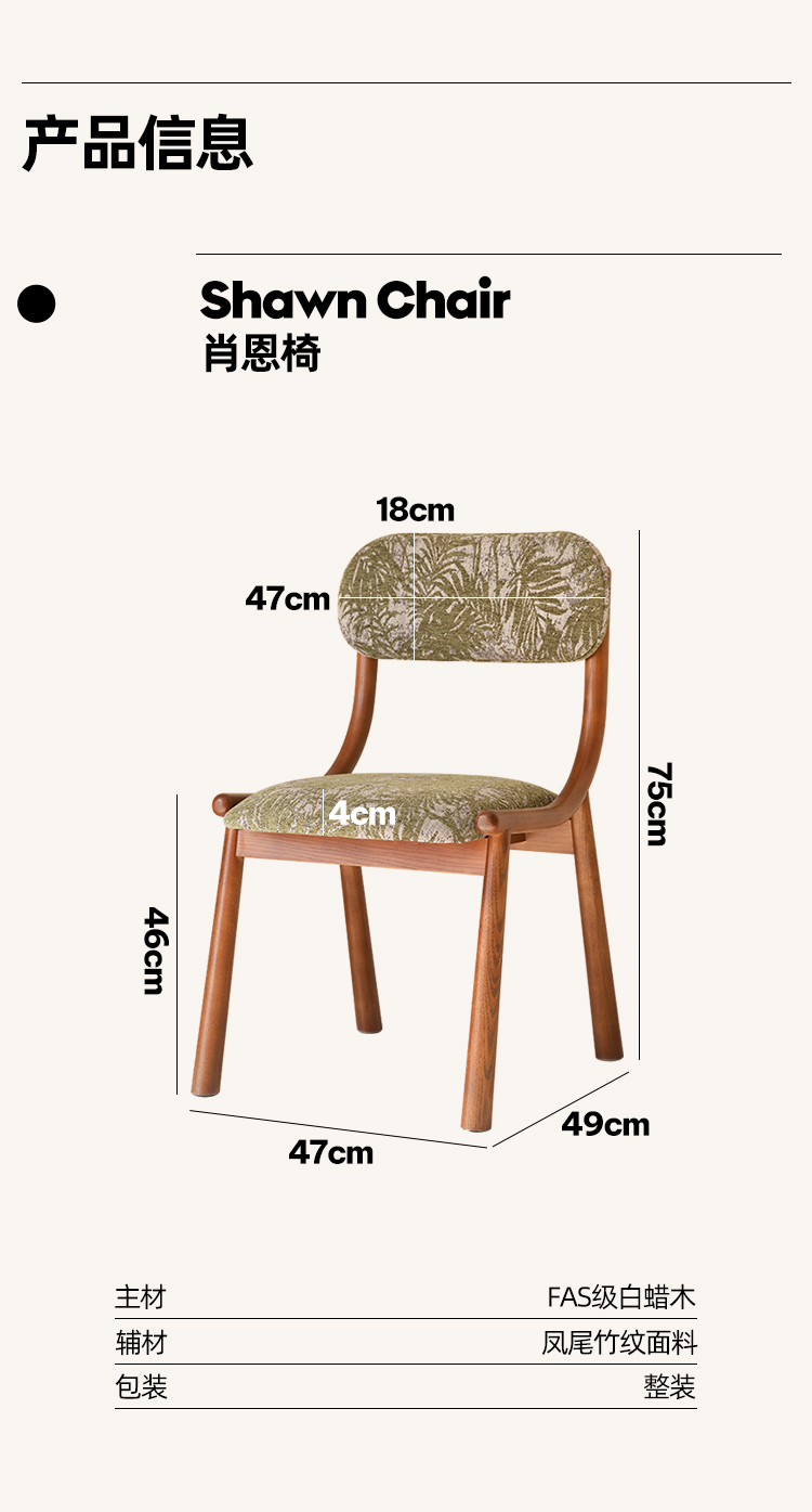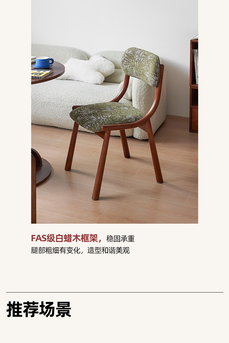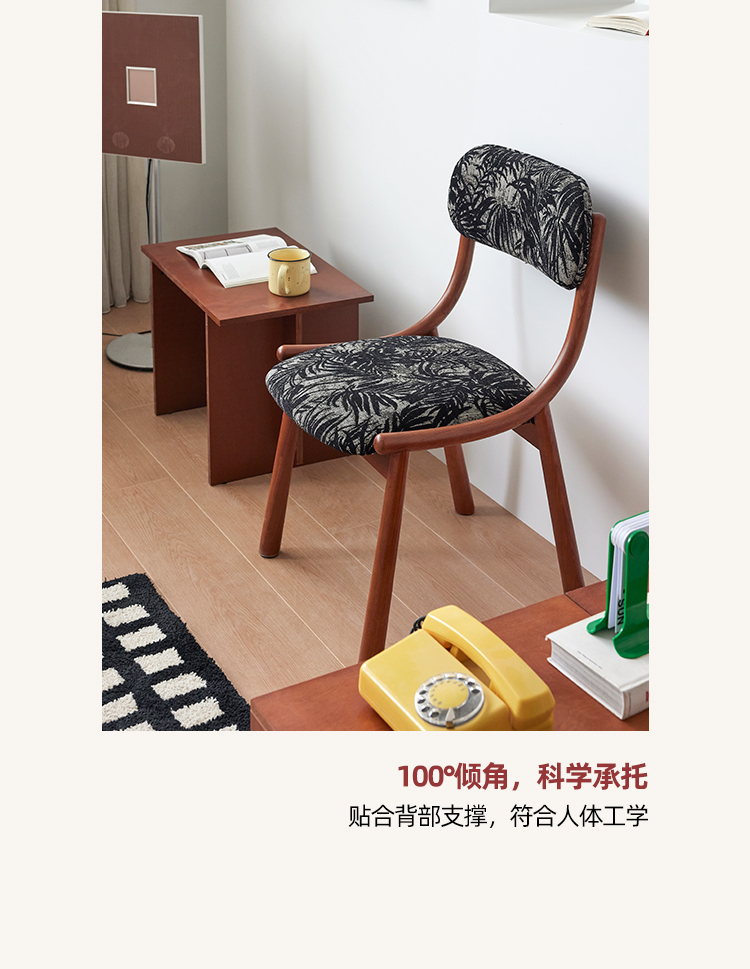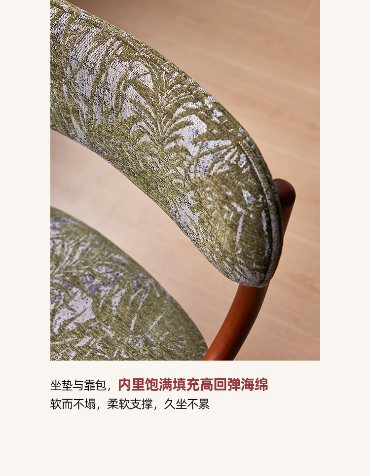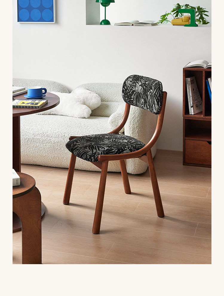 Mittelalterlicher französischer Esszimmerstuhl, einfacher nordischer Stuhl aus Massivholz mit weicher Tasche, Freizeitstuhl im Ins-Stil