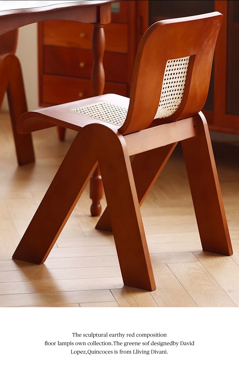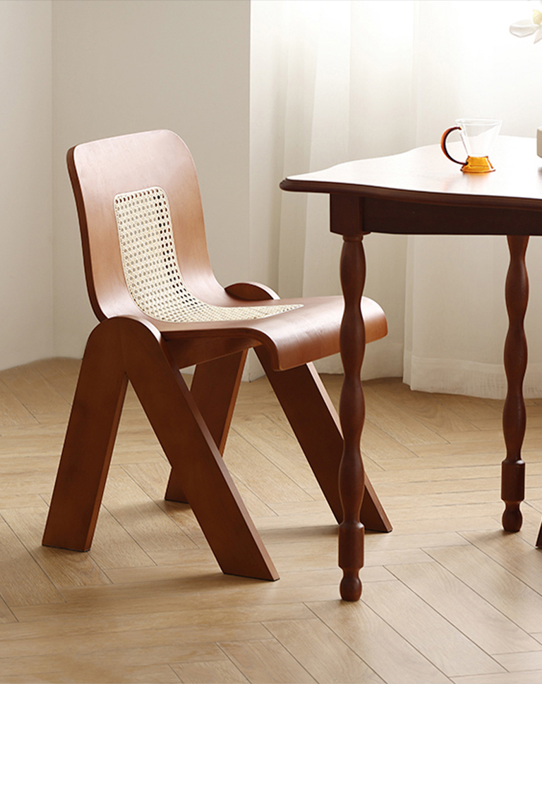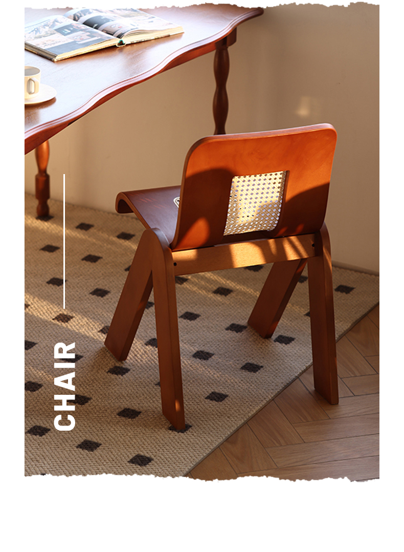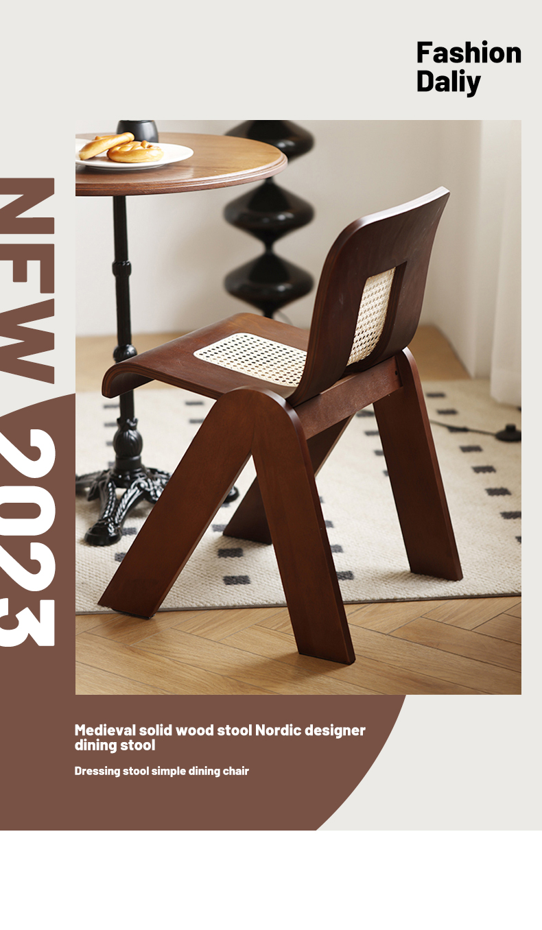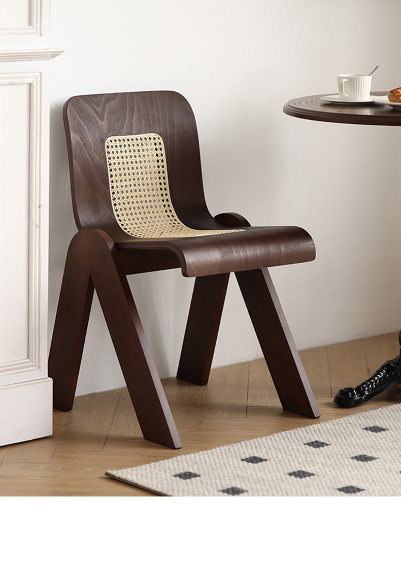 Mittelalterlicher Rattan-Esszimmerstuhl aus Massivholz, Wabi-Sabi-Windstuhl, französischer leichter Luxus-Rückenstuhl, Designer-Schreibtischstuhl
