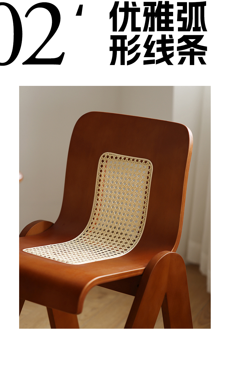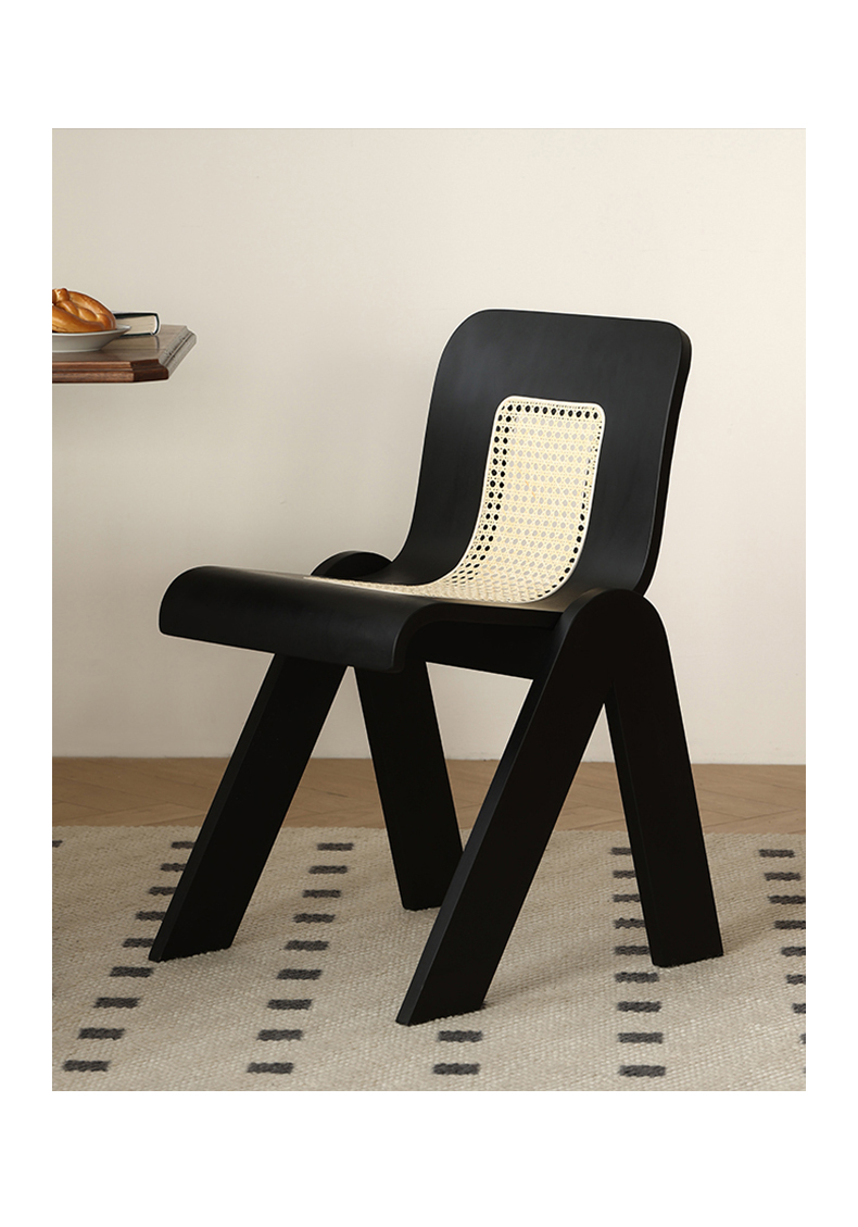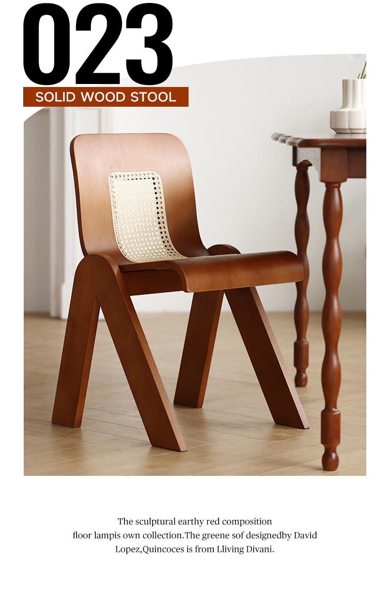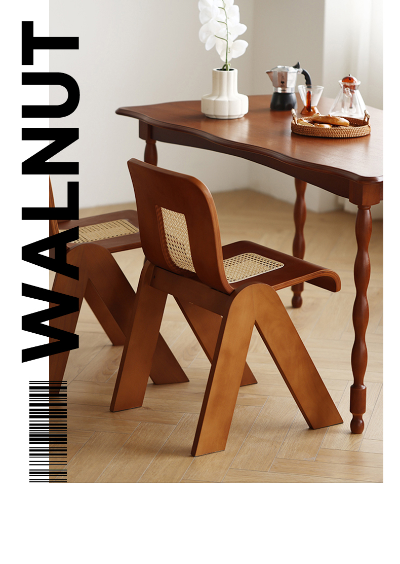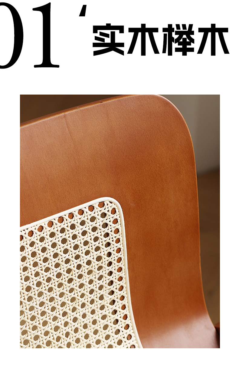 Mittelalterlicher Rattan-Esszimmerstuhl aus Massivholz, Wabi-Sabi-Windstuhl, französischer leichter Luxus-Rückenstuhl, Designer-Schreibtischstuhl