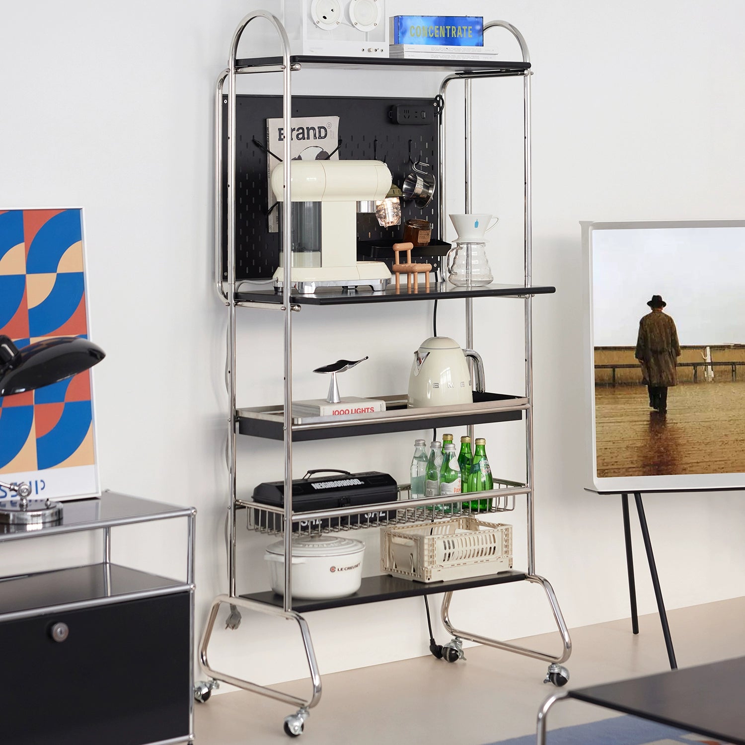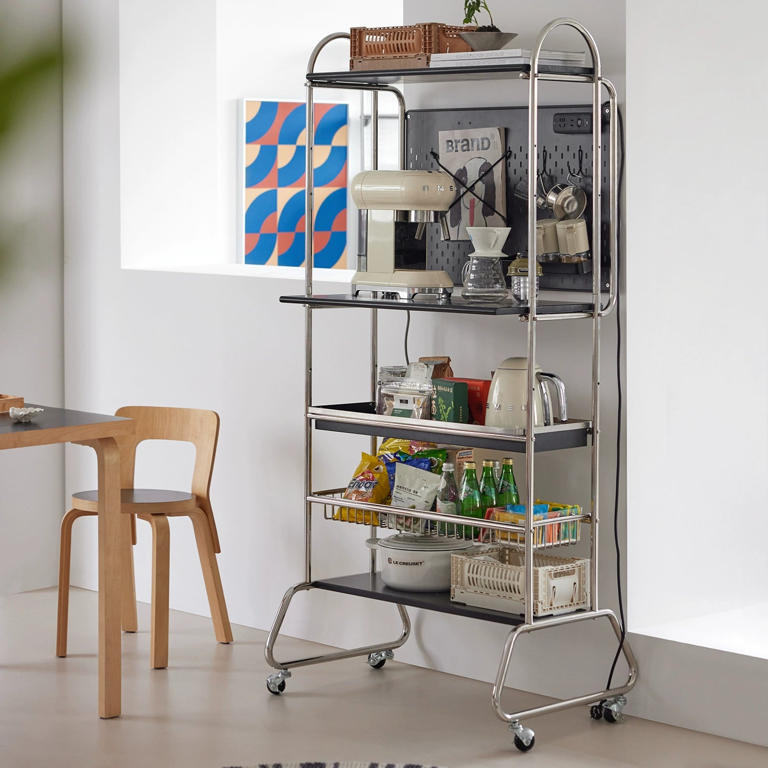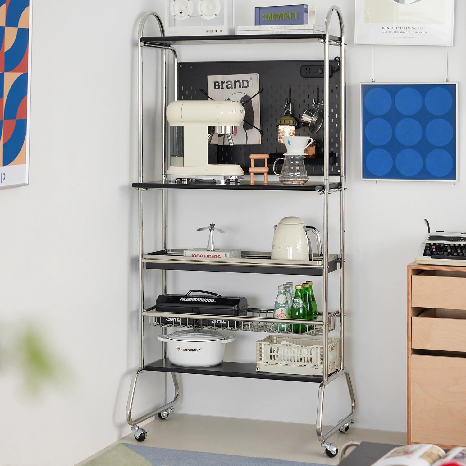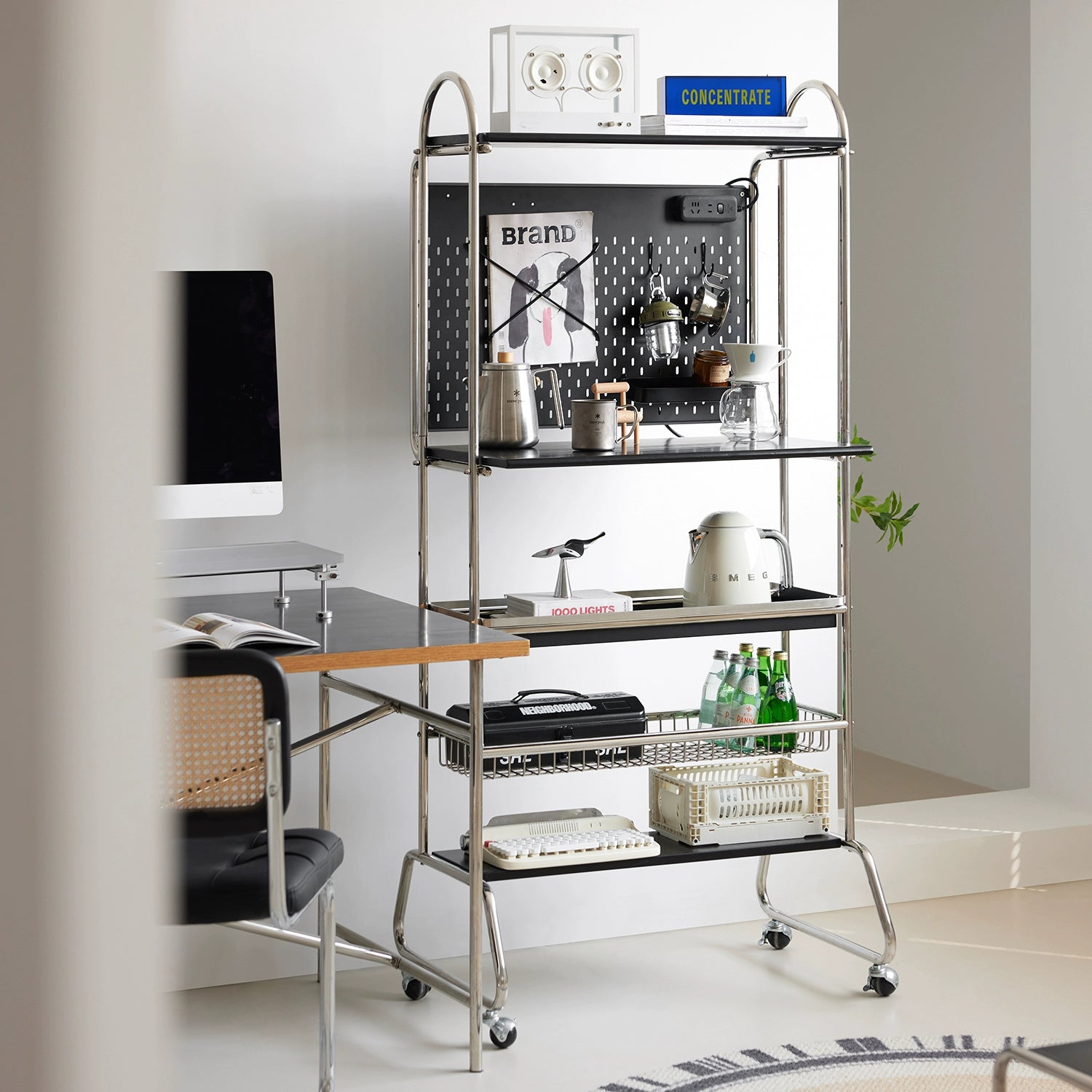 Mittelalterliches abnehmbares Regal, Lochbrett-Aufbewahrungsständer, kleiner Wohnungskaffeebar-Computertisch