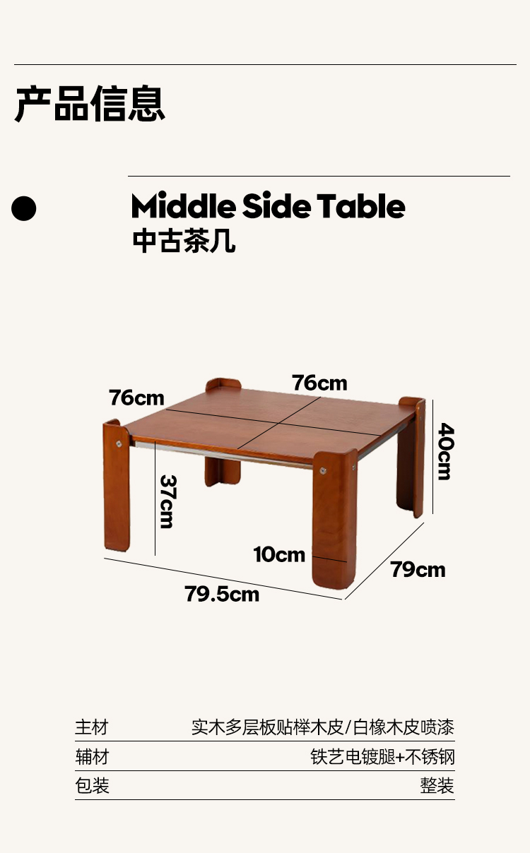 Mittelalterlicher Couchtisch aus Massivholz, nordisches Sofa, kleiner quadratischer Tisch, schlichter moderner Balkon-Ecktisch, leichter Luxus, hohes Gefühl