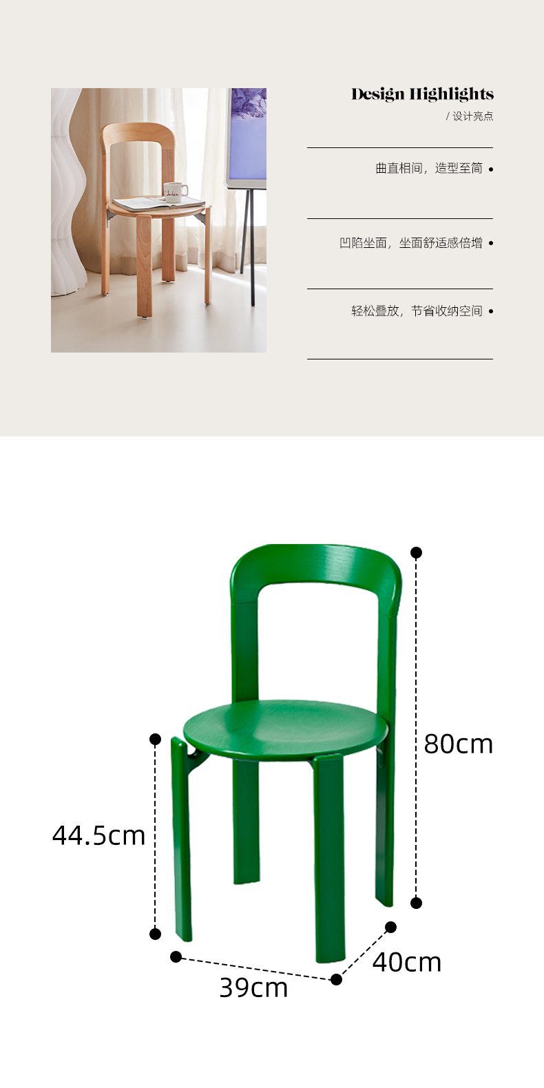 Mittelalterlicher Esszimmerstuhl aus Massivholz, Farbstuhl, minimalistischer Esstischstuhl für Zuhause, Café-Rückenlehne, Stapel