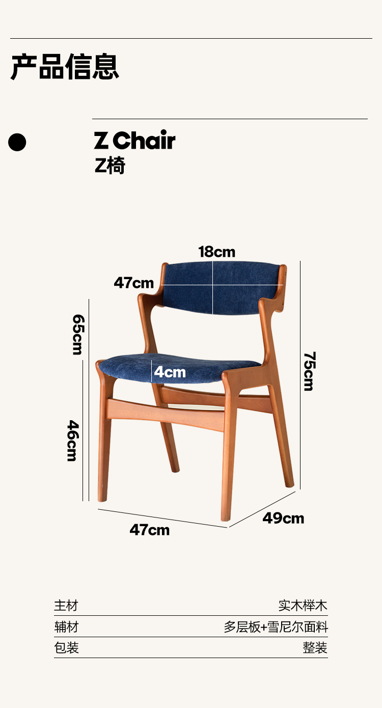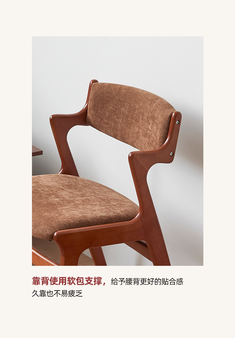 Mittelalterlicher Esszimmerstuhl aus Massivholz, nordischer Retro-Designerstuhl mit weicher Rückenlehne, lässiger Schreibtischstuhl