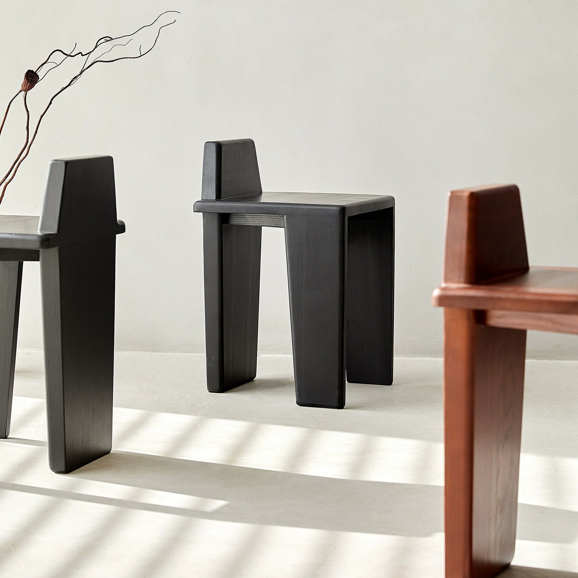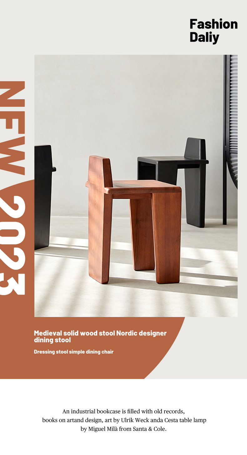 Mittelalterlicher Massivholzhocker Nordischer Designer-Esszimmerhocker Haushalts-Wabi-Wind-Ankleidehocker einfacher Esszimmerstuhl