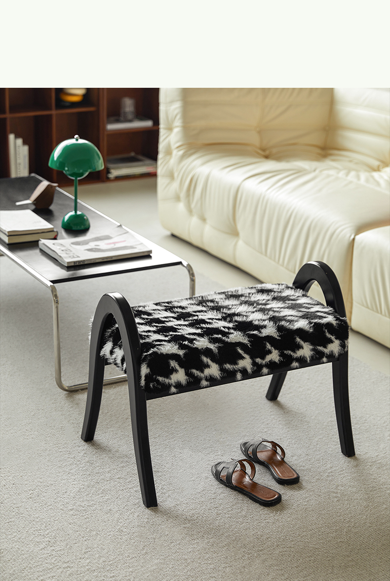 Schuhwechselhocker aus Nerz, niedriger Haushaltshocker aus Massivholz, kleiner Designerhocker im mittelalterlichen Stil, leichtes Luxus-High-End-Pedal