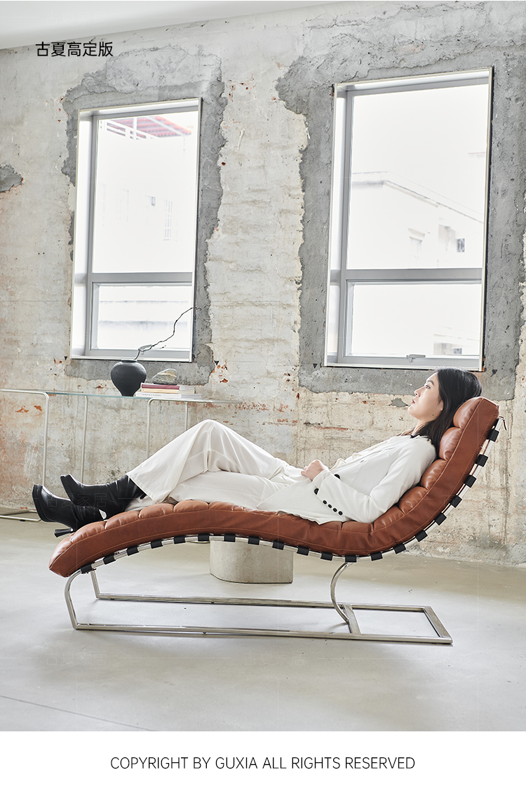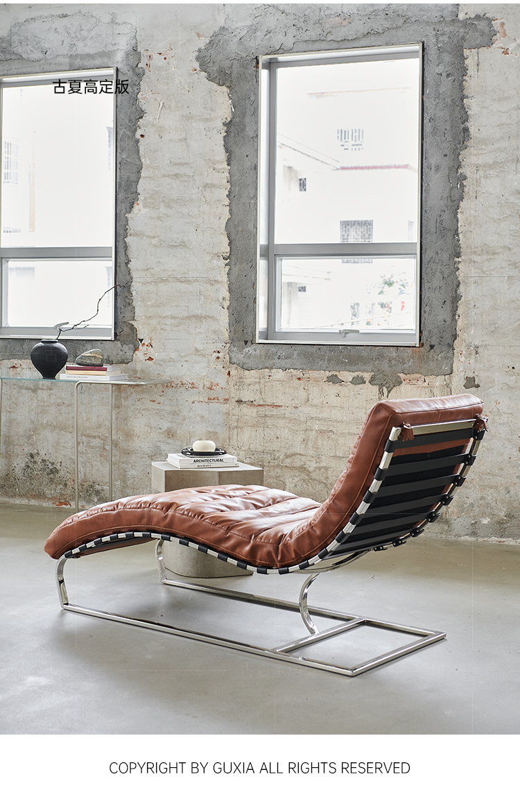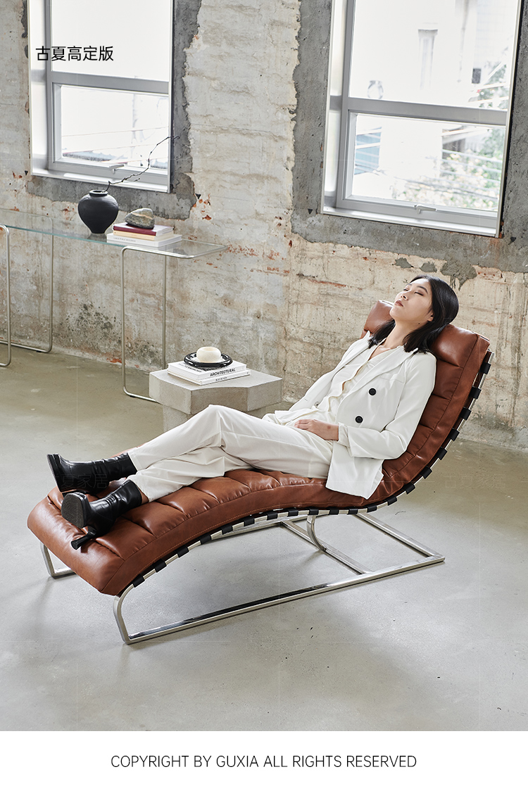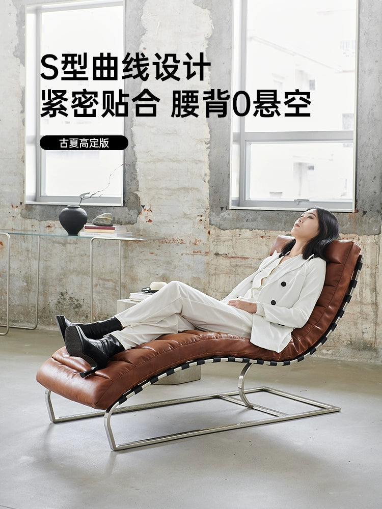 Oviedo Chaise Recliner Medieval Designer Oil Wax Leather Living Room Balcony Lunch Break Lazy Lounge Chair