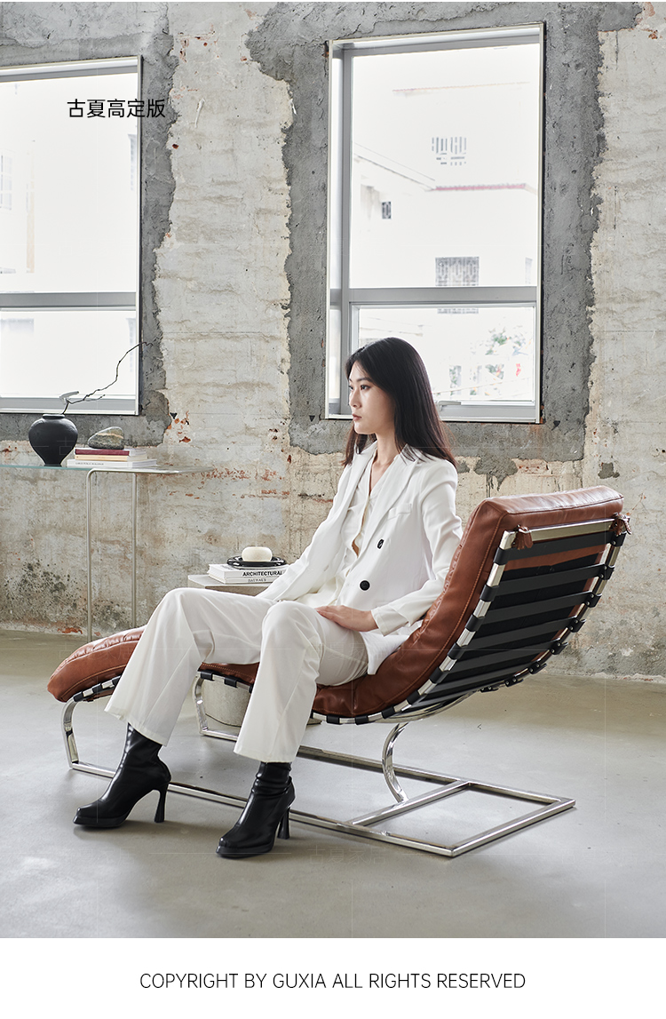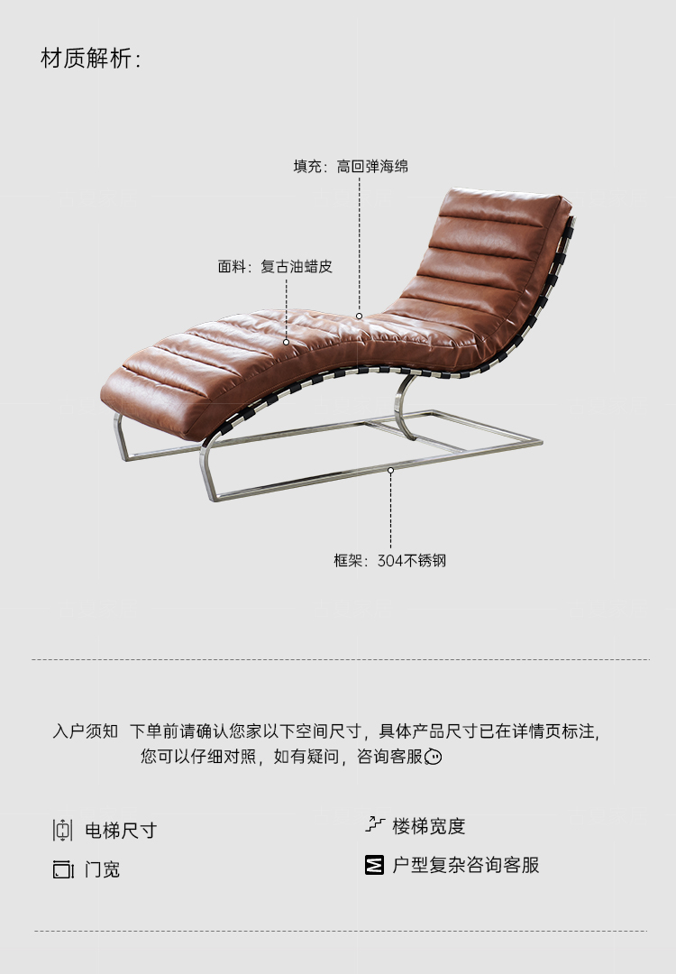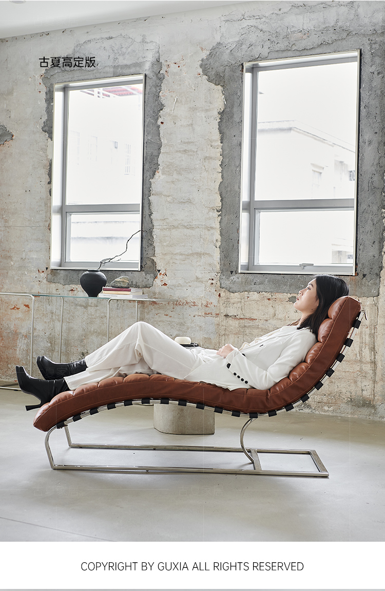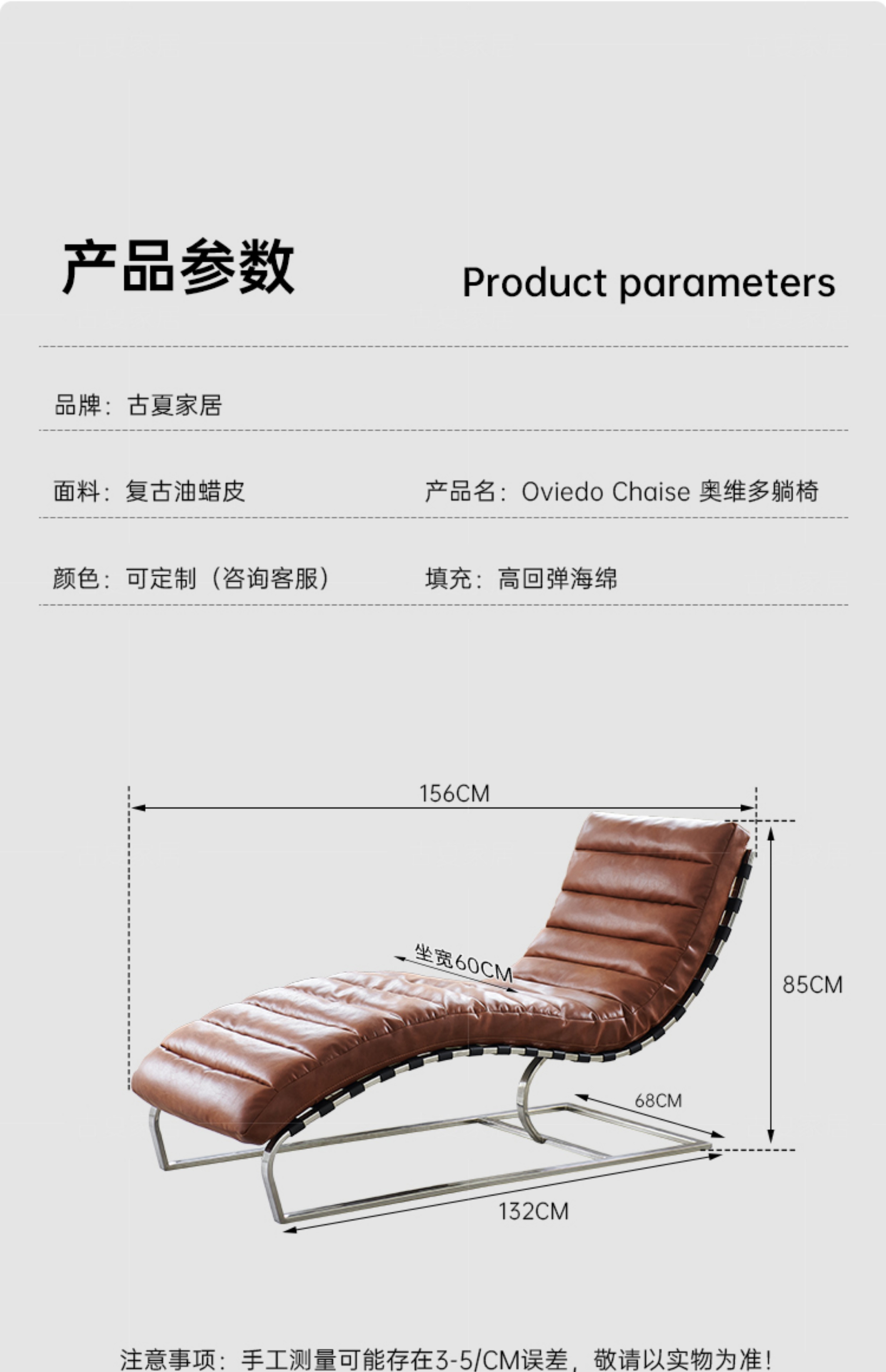 Oviedo Chaise Recliner Medieval Designer Oil Wax Leather Living Room Balcony Lunch Break Lazy Lounge Chair