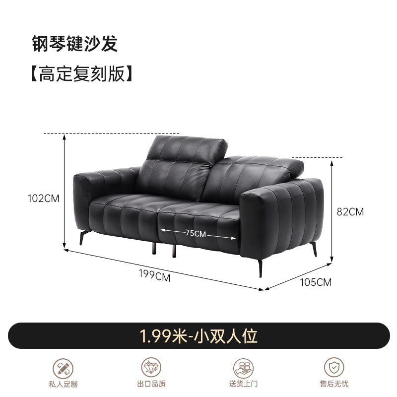 Piano Key Sofa Italian Minimalist Size Apartment First Layer Cowhide Living Room Caterpillar Straight Row Three-person Leather Sofa