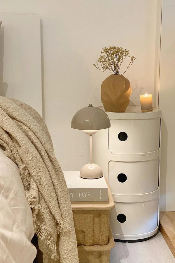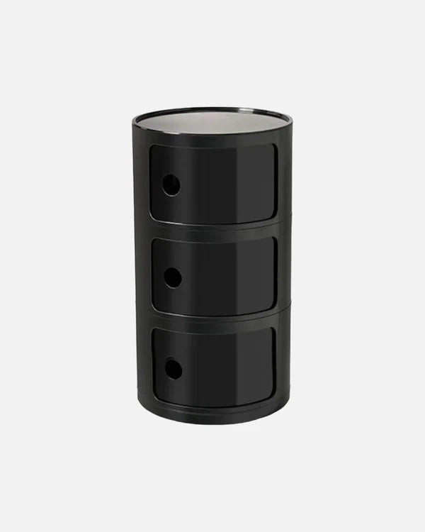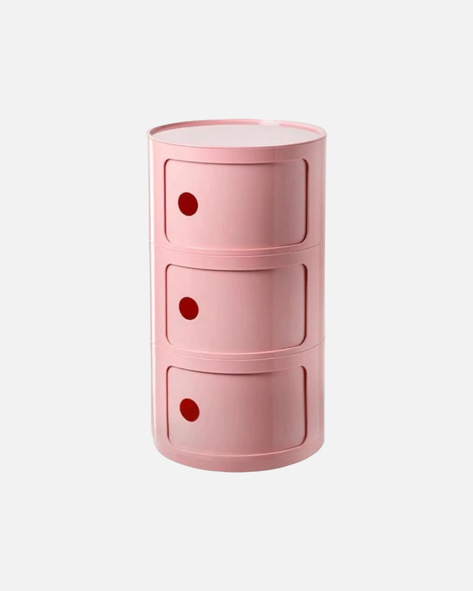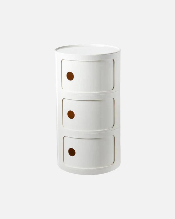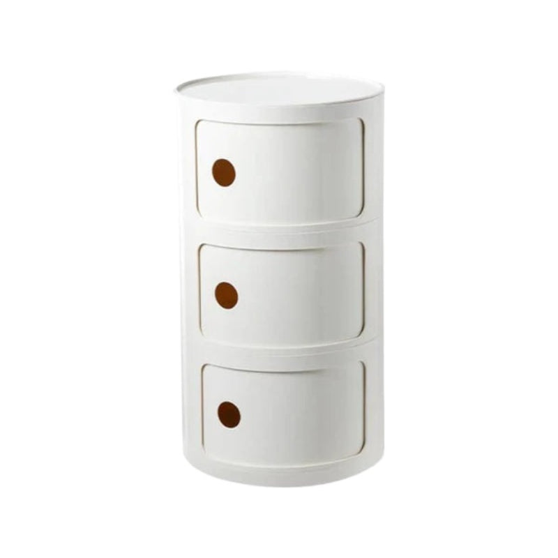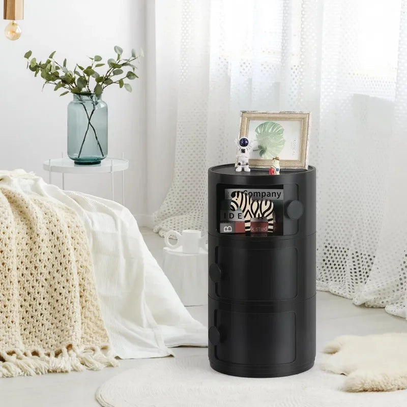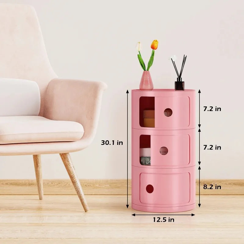 Runder Aufbewahrungstisch | Nachttisch, 3-stufiger Nachttisch aus Kunststoff, Aufbewahrungseinheit, Kommode mit Schubladen und Schiebetür, nordischer moderner Nachttisch für Schlafzimmer