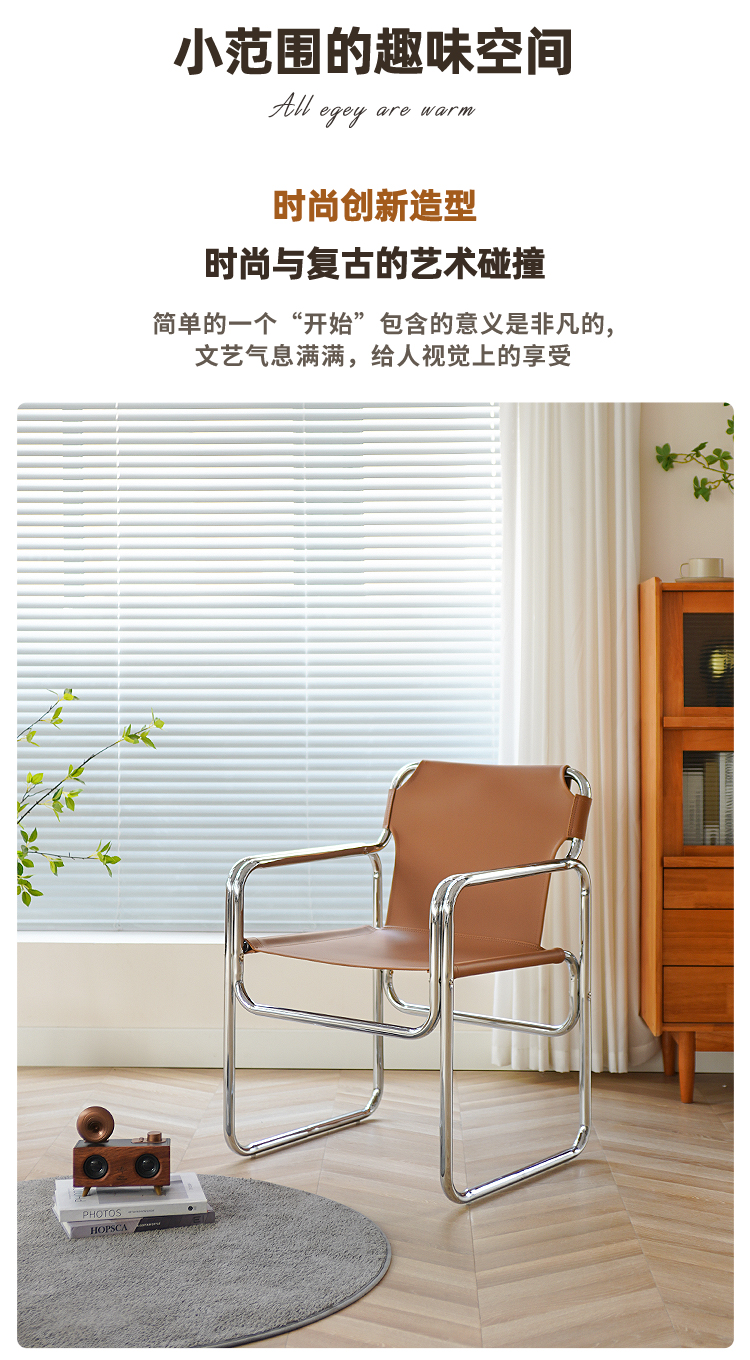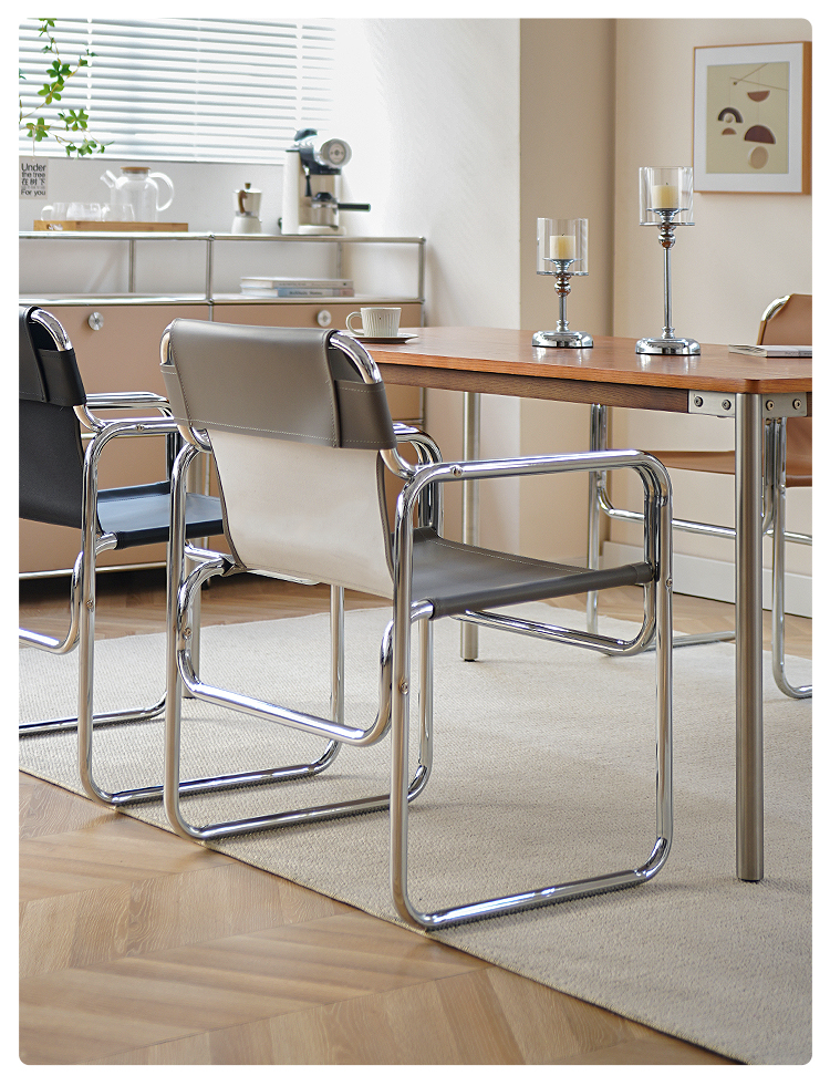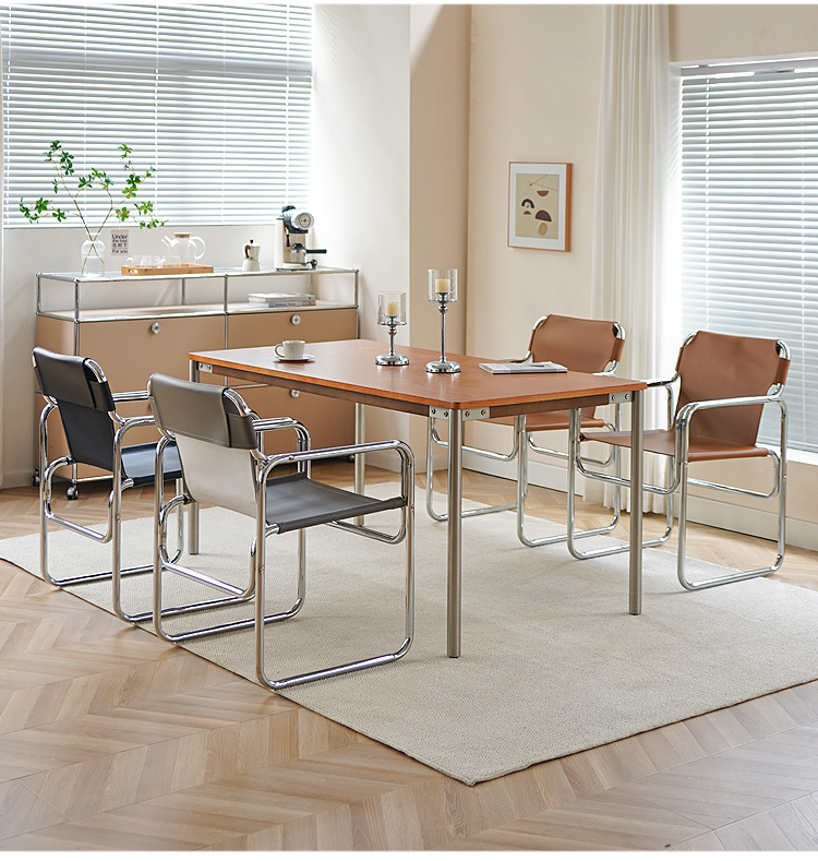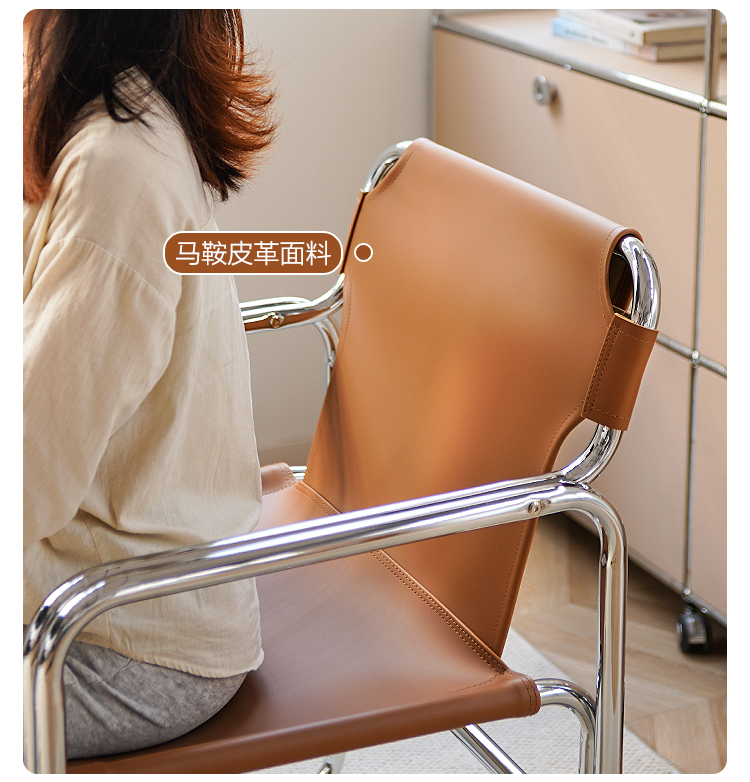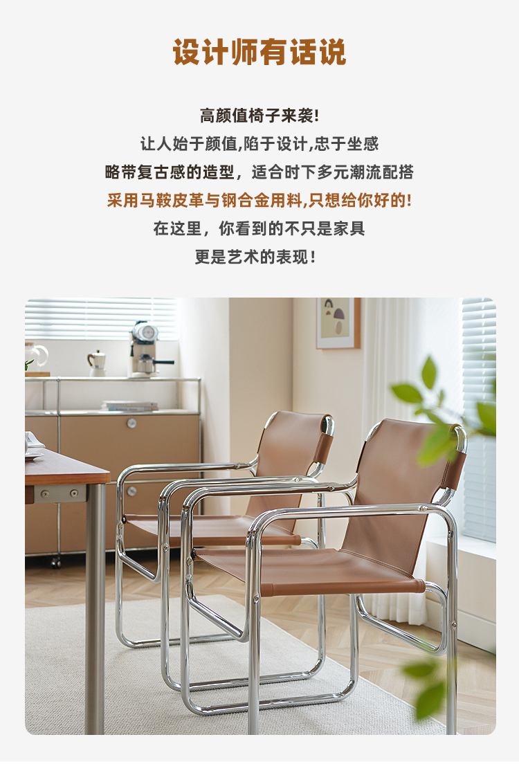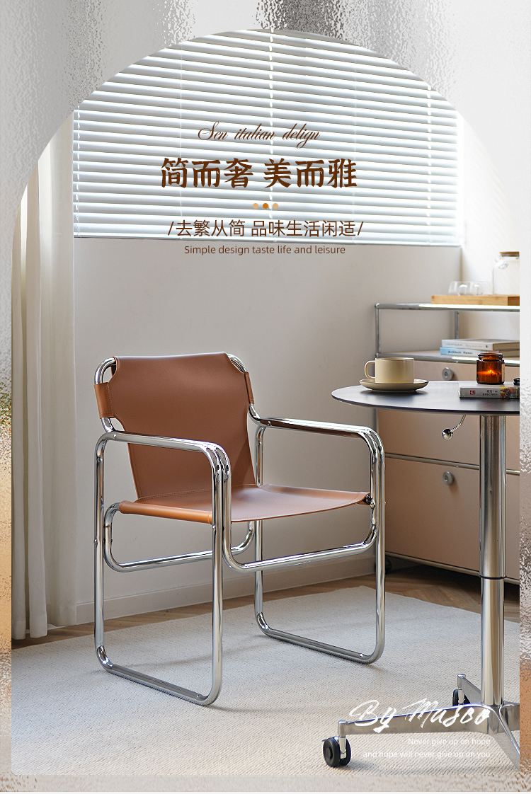 Esszimmerstuhl aus Sattelleder im nordischen Industriestil, leichter Luxus, High Sense, Home Master Chair, mittelalterliche Eisenkunst