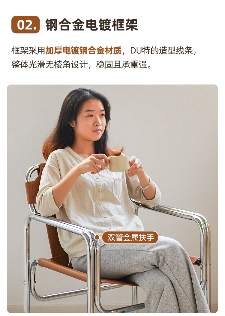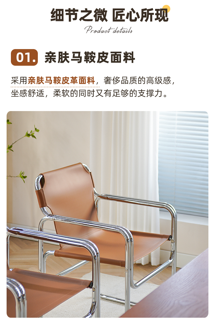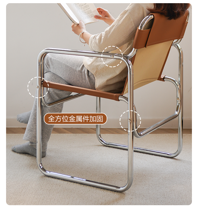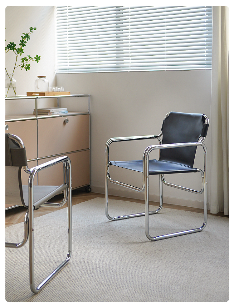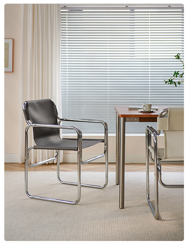 Esszimmerstuhl aus Sattelleder im nordischen Industriestil, leichter Luxus, High Sense, Home Master Chair, mittelalterliche Eisenkunst