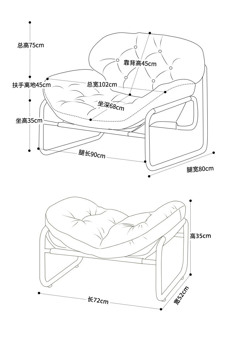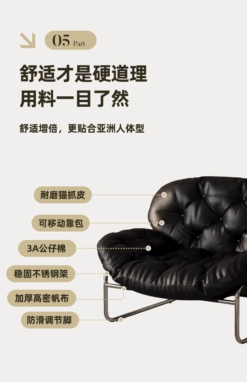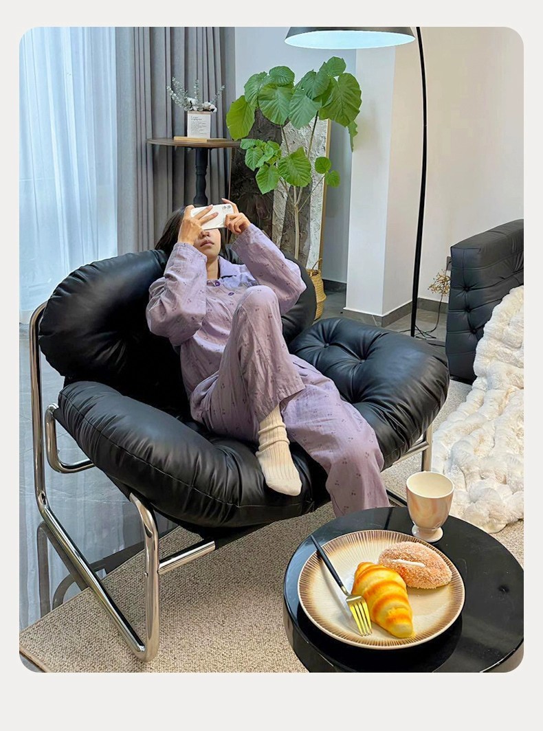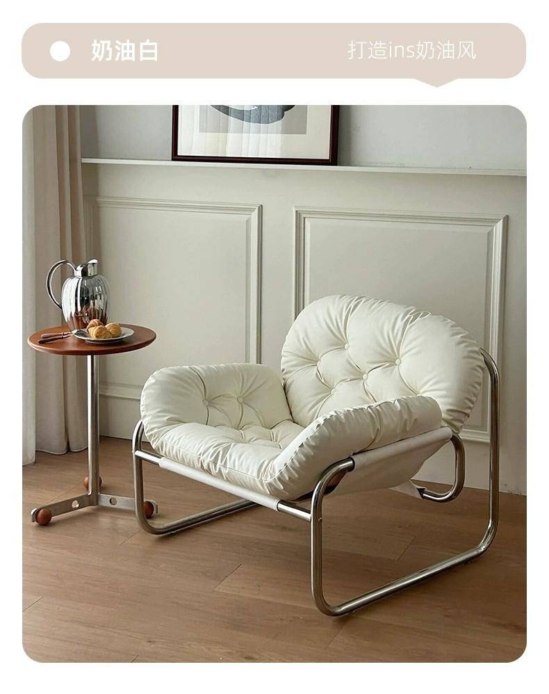 Einzelsofastuhl, leichter Luxus, hochwertiger Wohnzimmer-Freizeitsessel, cremefarben, mittelalterlicher Bauhaus-Lazy Chair