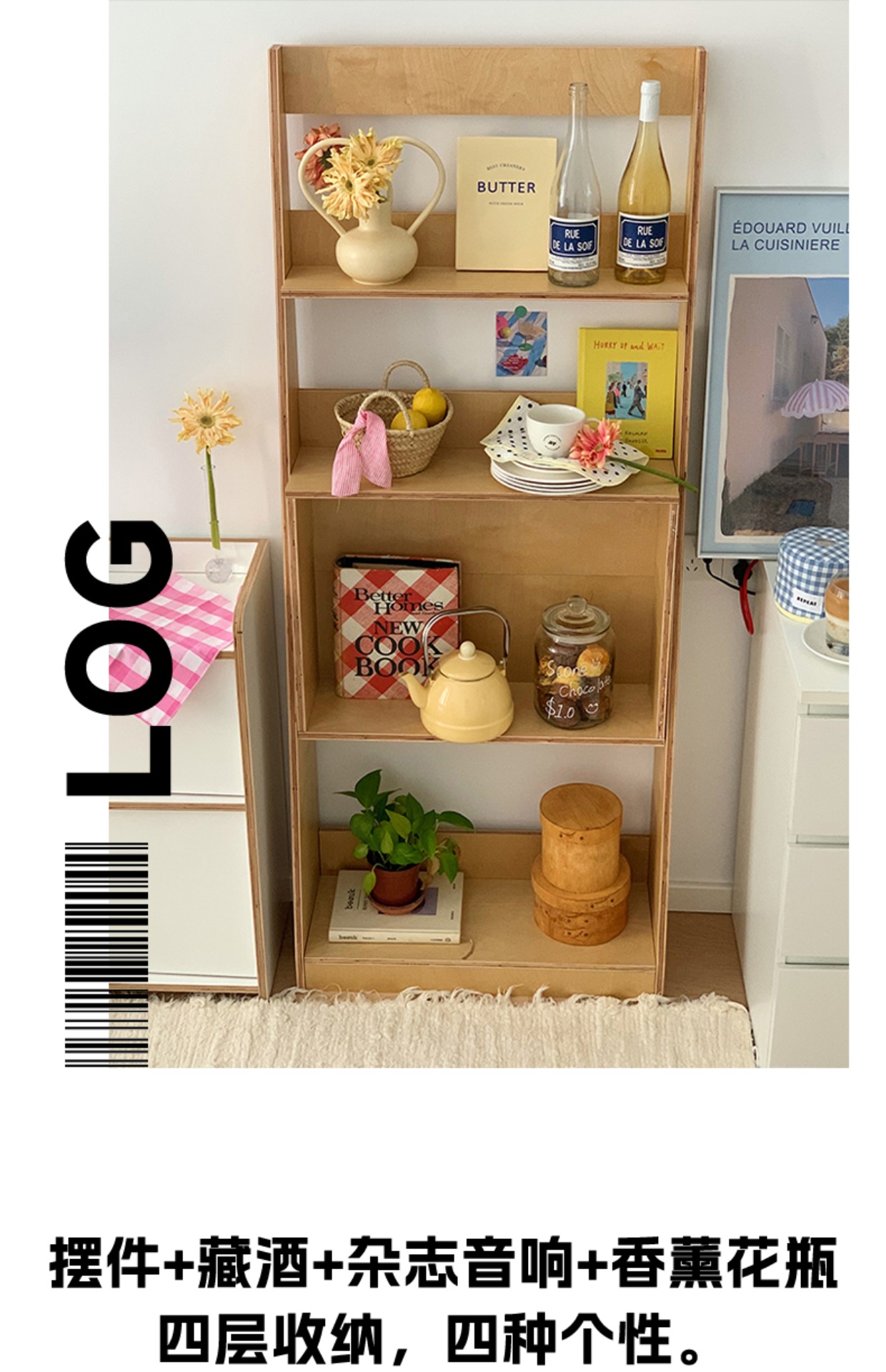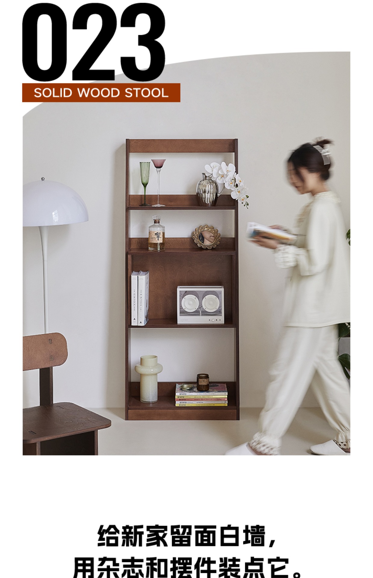 Boden-bis-Decke-Regal aus massivem Holz, mittelalterliches Wandregal, koreanisches Ins-Stil, Zeitschriften-Bücherregal, Marine-Brett