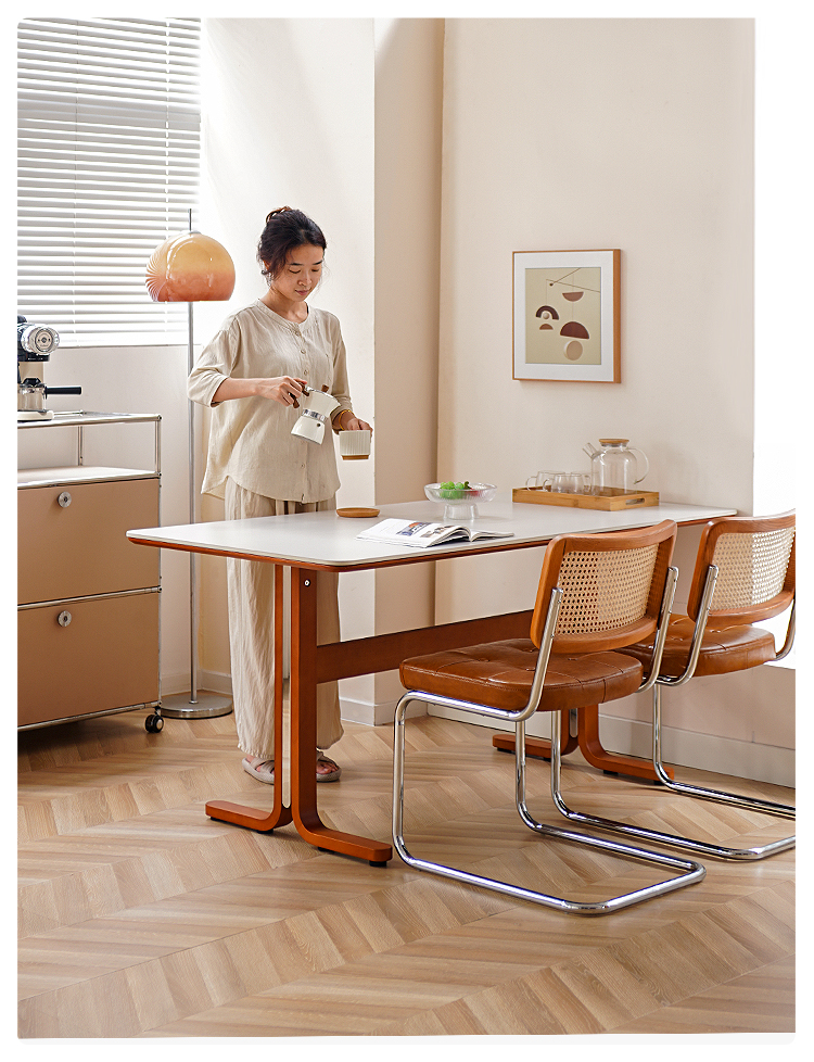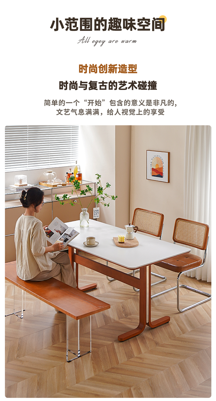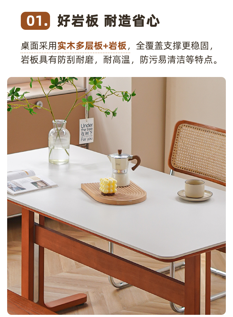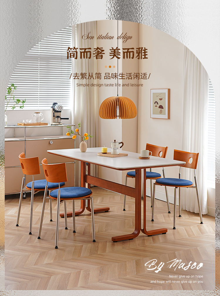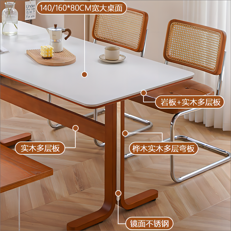 Esstisch aus massivem Holz, Steinplatte, mittelalterlicher nordischer Esstisch, moderner, schlichter quadratischer Tisch für den Haushalt, leichter Luxus und fortschrittlich