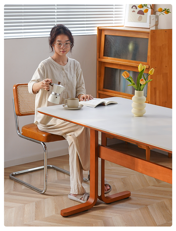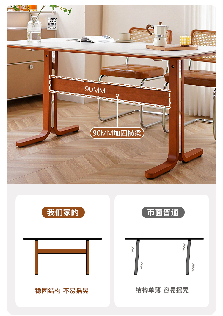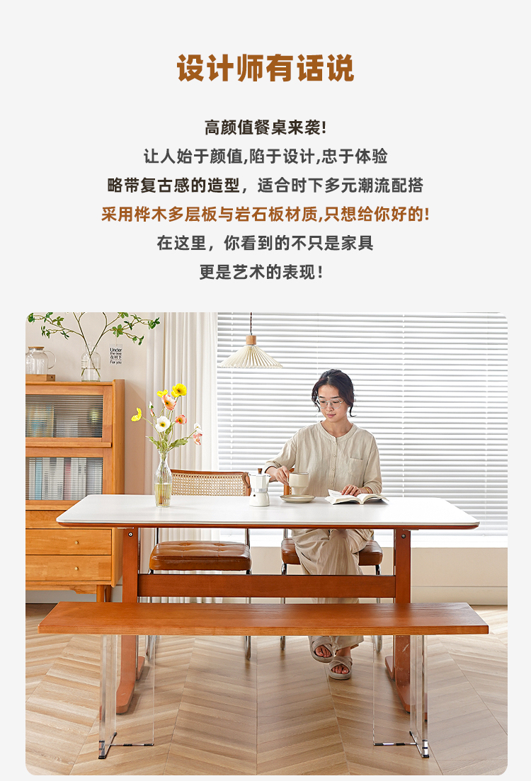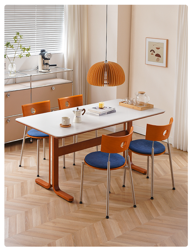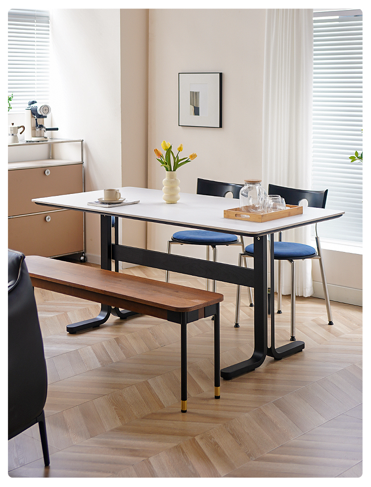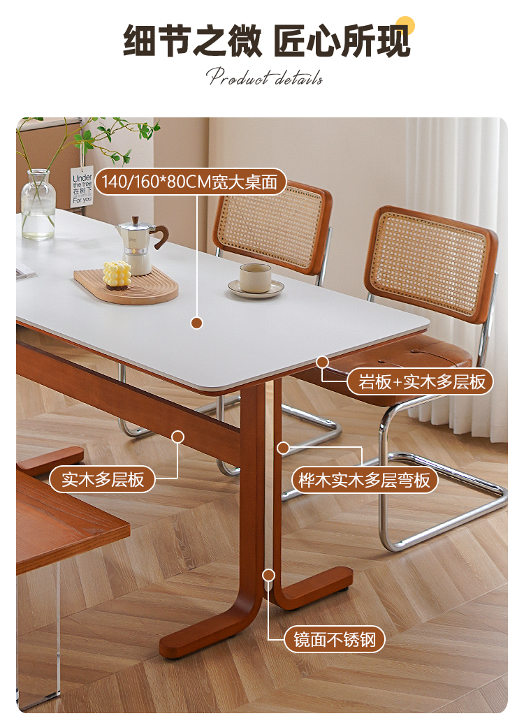 Esstisch aus massivem Holz, Steinplatte, mittelalterlicher nordischer Esstisch, moderner, schlichter quadratischer Tisch für den Haushalt, leichter Luxus und fortschrittlich