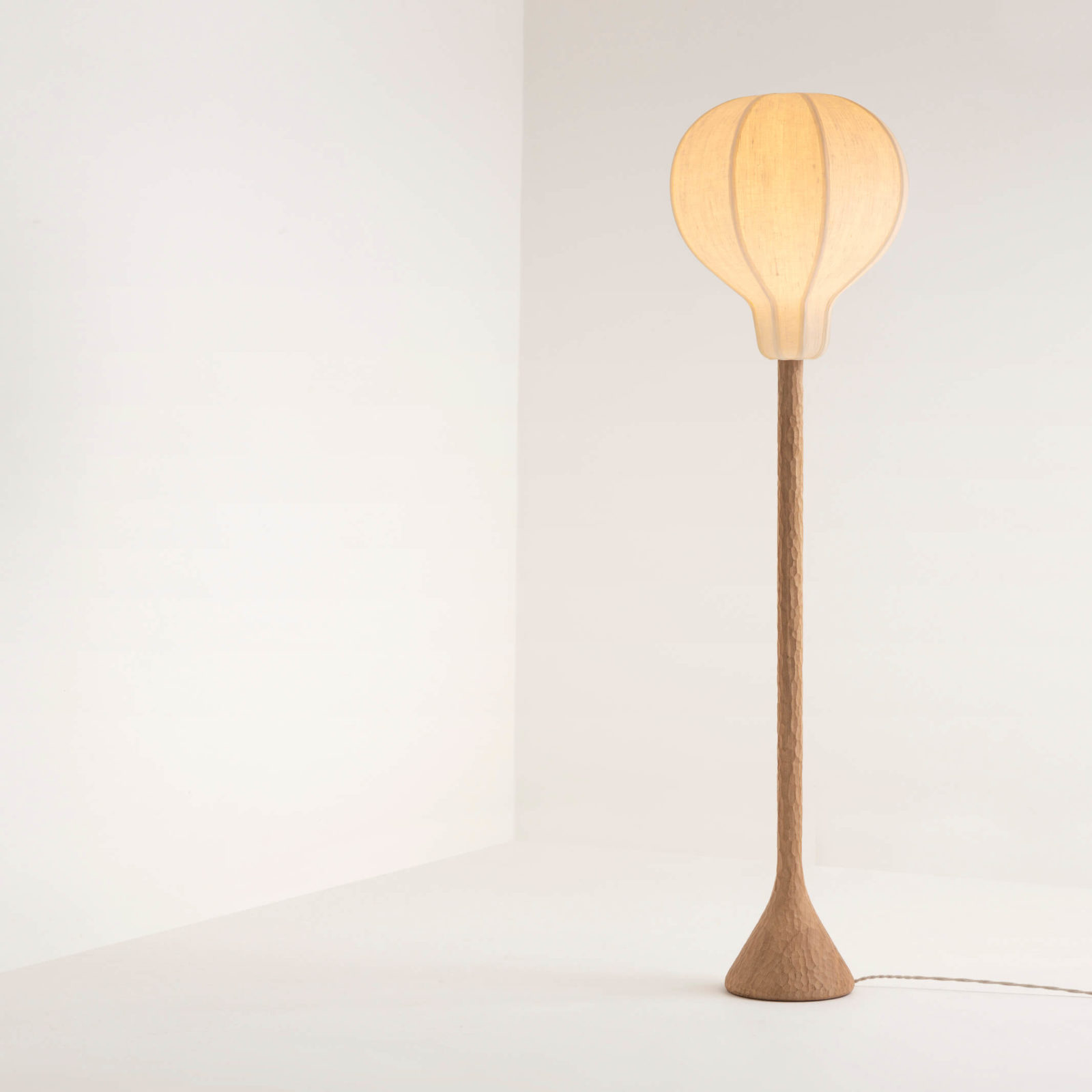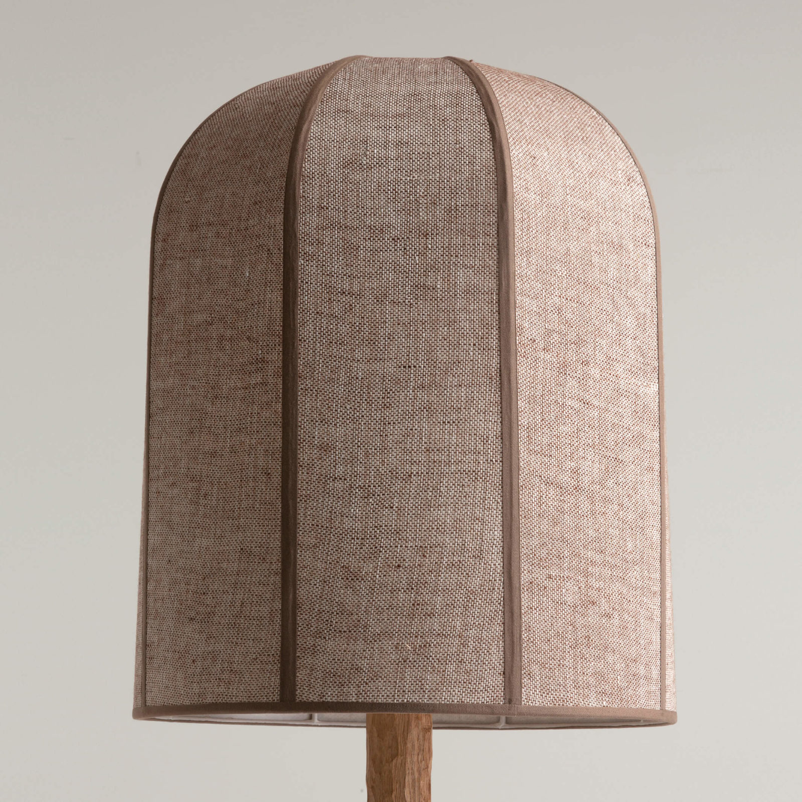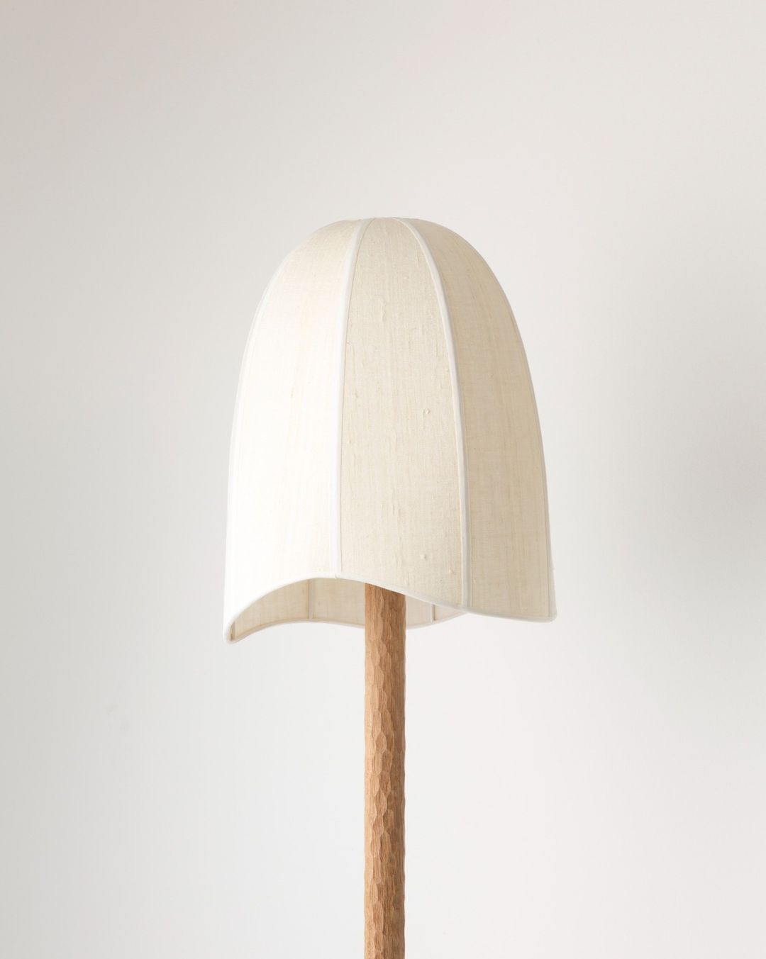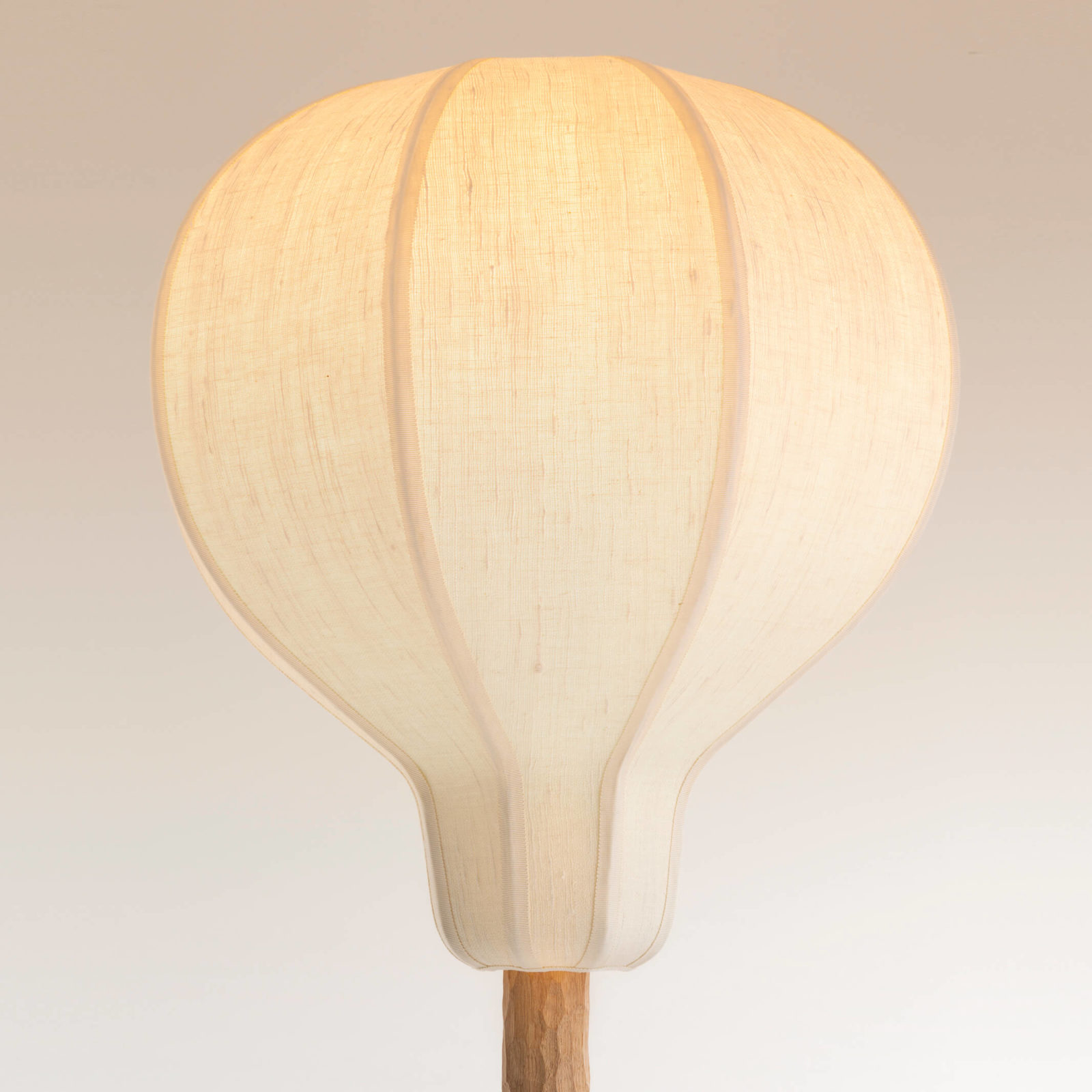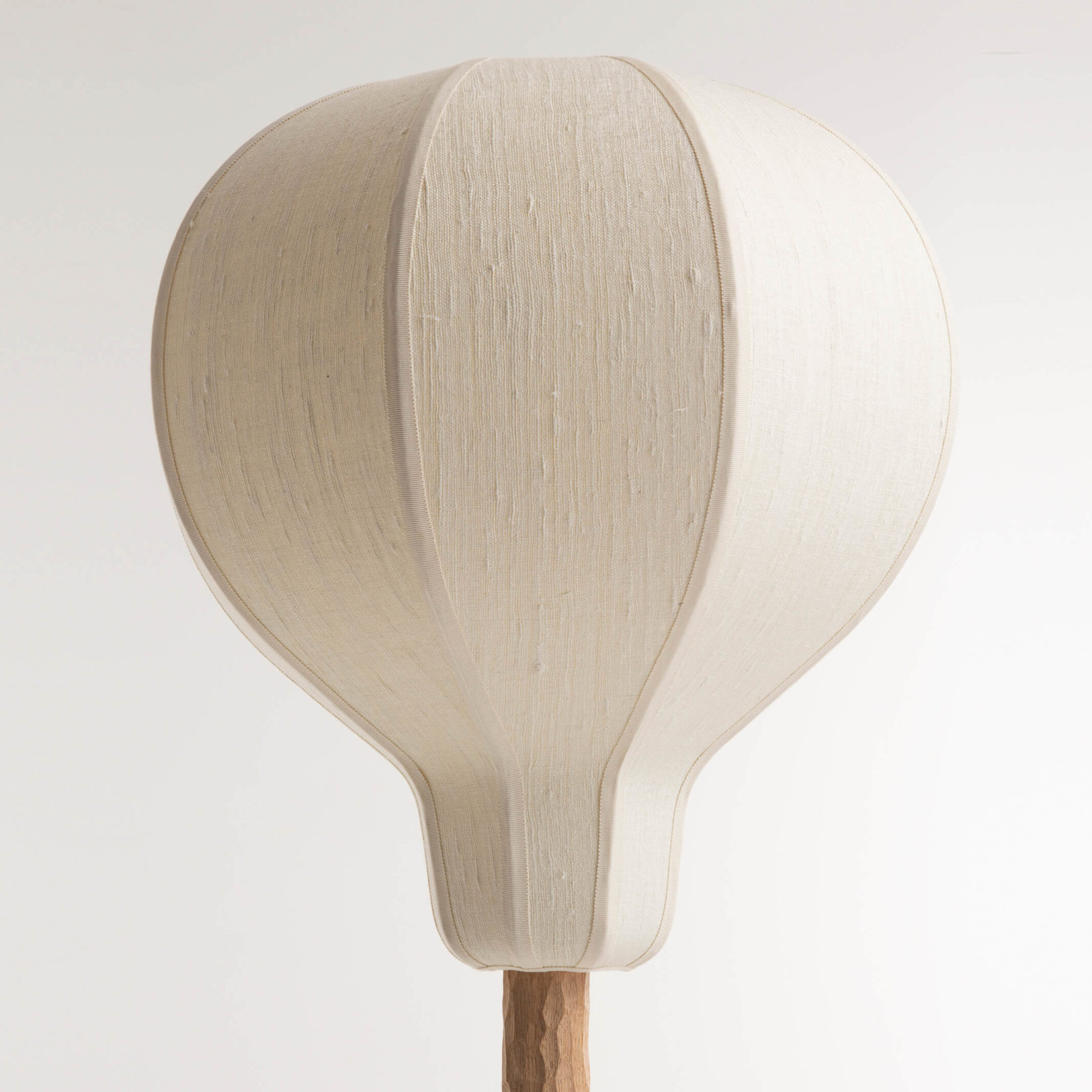 Strohhut-Stehlampe, Wabi-Windholz-Dekolampe, minimalistische, handgefertigte vertikale Nachttischlampe aus Seide