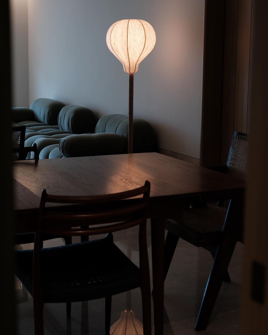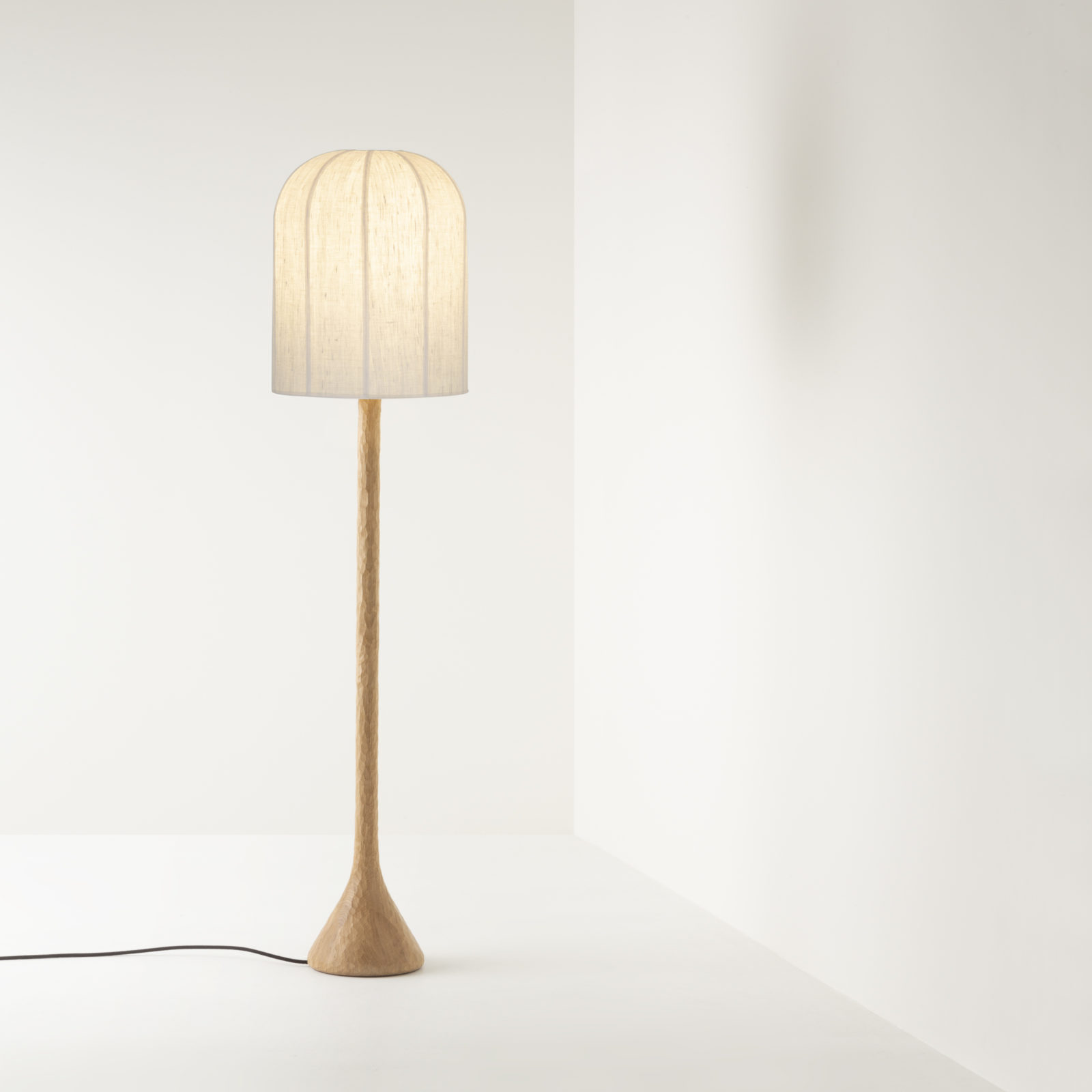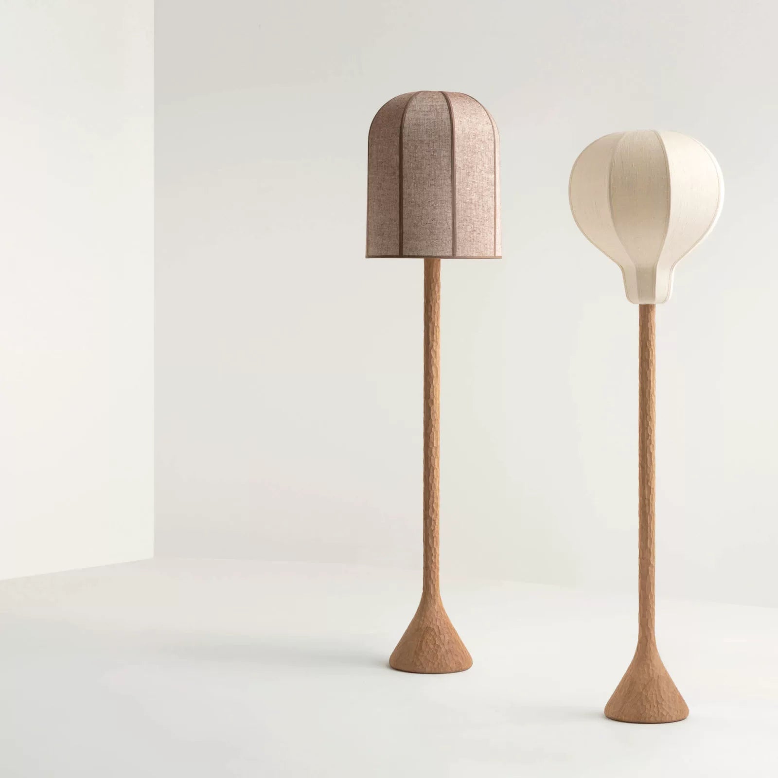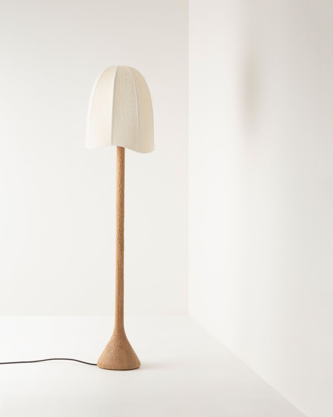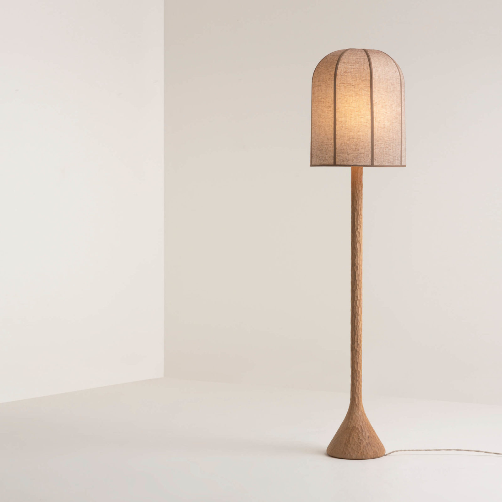 Strohhut-Stehlampe, Wabi-Windholz-Dekolampe, minimalistische, handgefertigte vertikale Nachttischlampe aus Seide